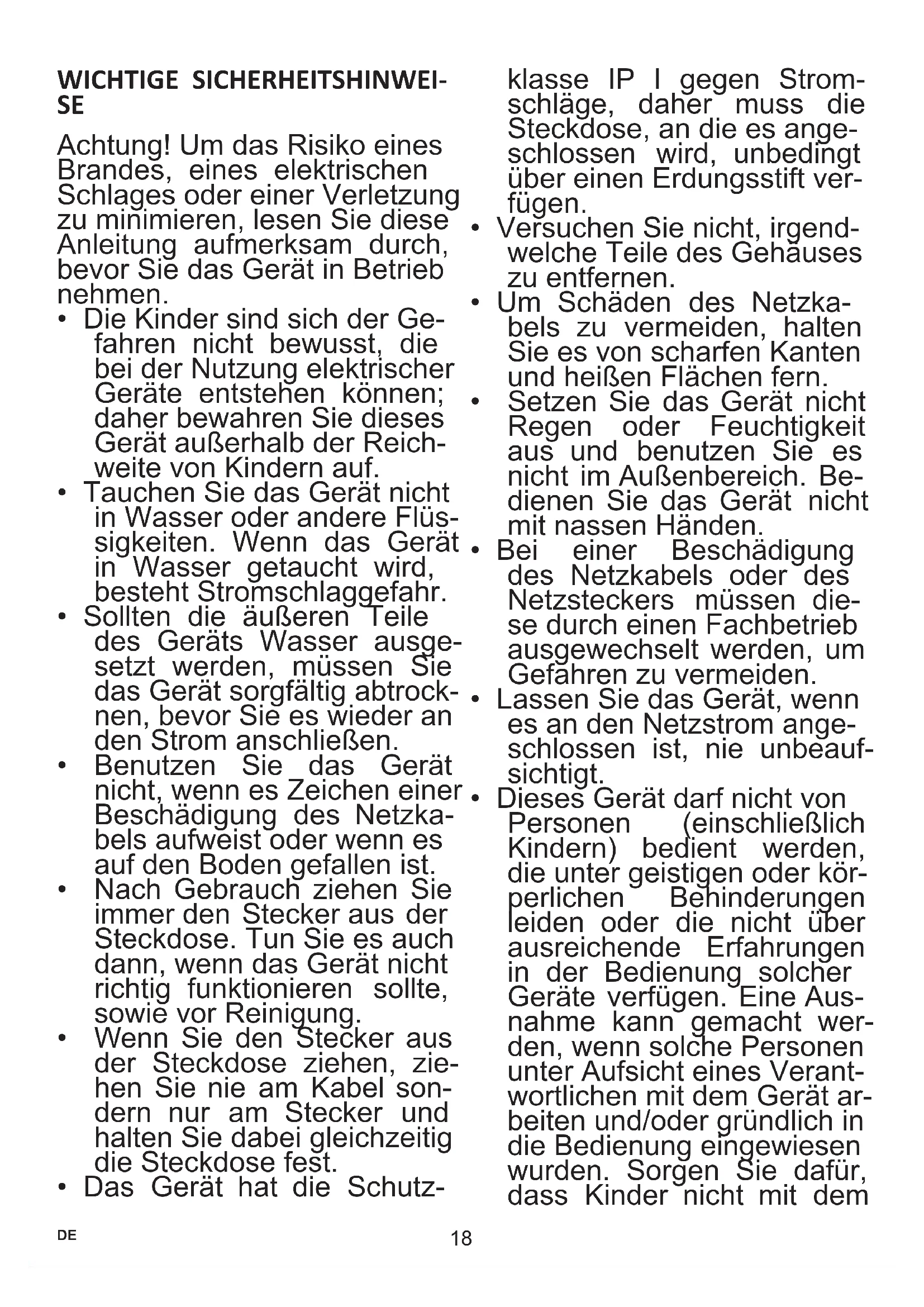 DE BEDIENUNGSANLEITUNG 18