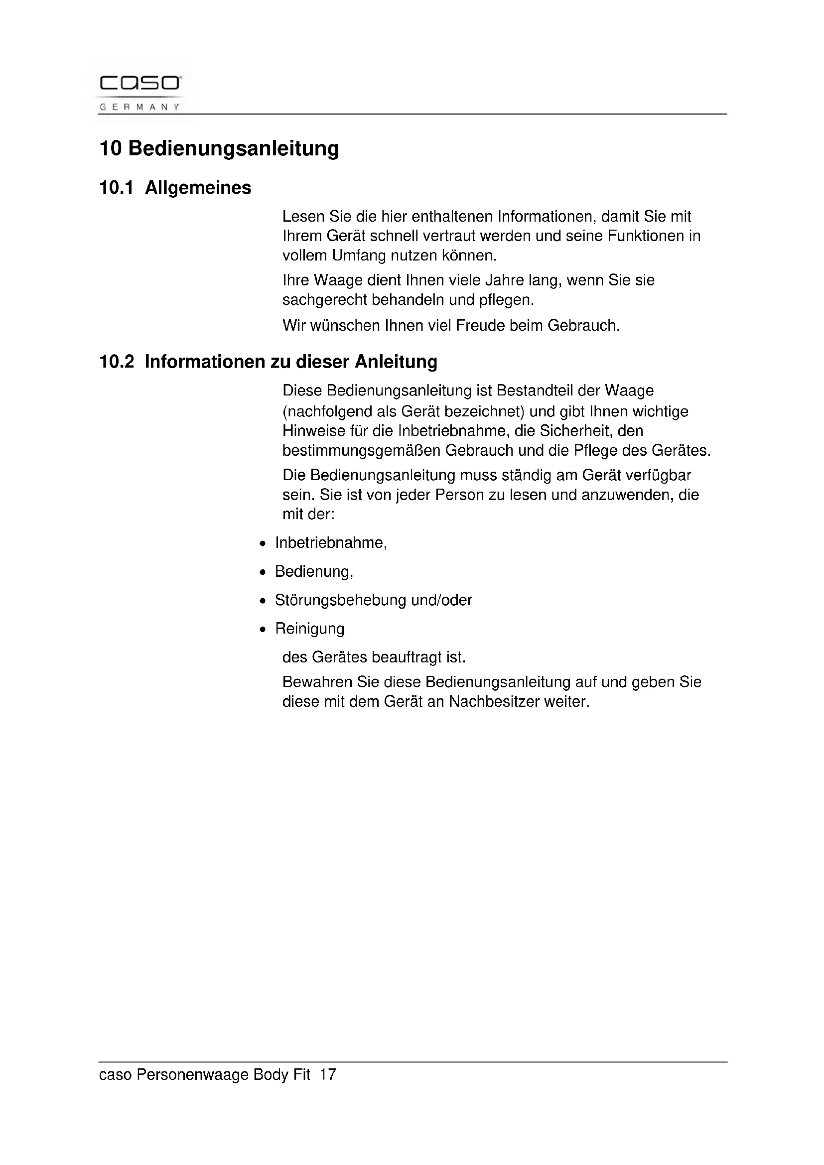 Body Fit 3410 - Waagen CASO - Kostenlose Bedienungsanleitung