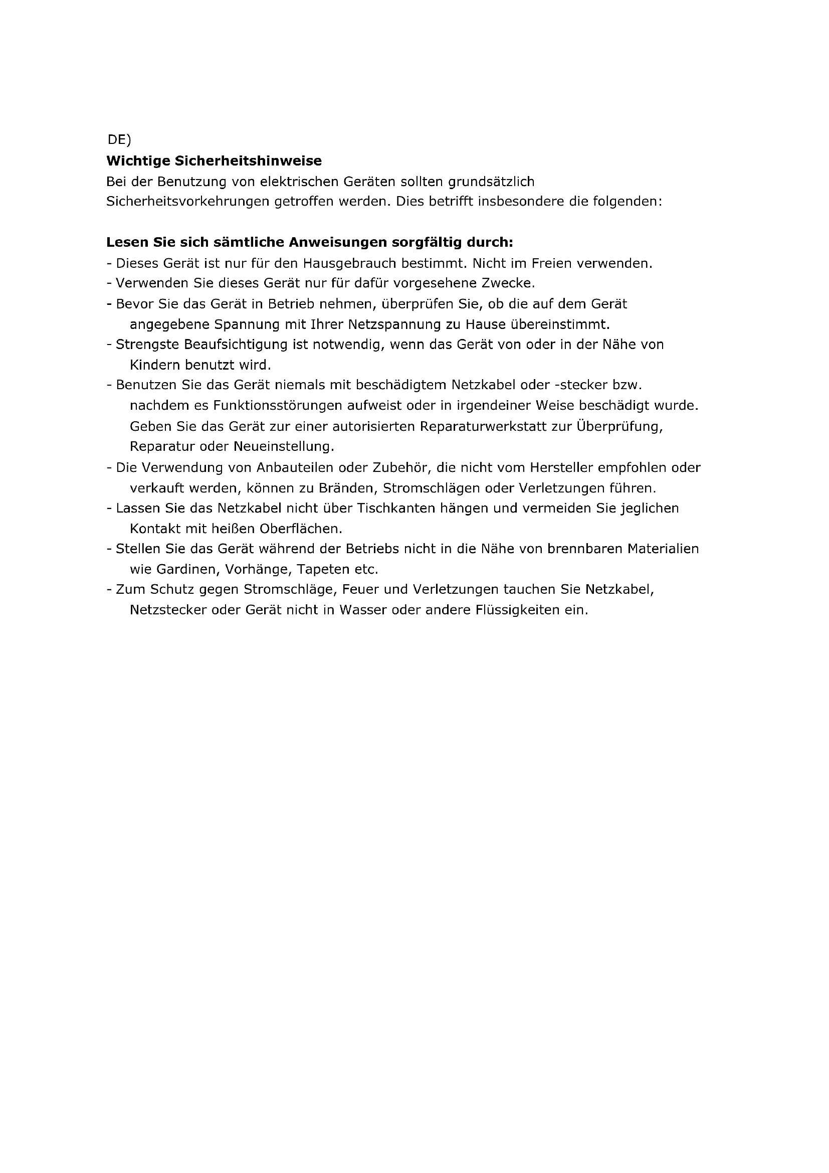 Rangement Laisser refroidir complètement l’appareil avant de la ranger. Ranger l’appareil dans un endroit sec. Ne pas mettre d’objet lourd sur l’appareil lors du stockage, cela pourrait endommager l’appareil.Service Pour toute question, contactez le service clientèle Trebs :info@trebs.nl Trebs BV Thermiekstraat 1a, 6361 HB, Nuth, Nederland, Email: info@trebs.nl, Internet: www.trebs.nl CEDE) Wichtige Sicherheitshinweise Bei der Benutzung von elektrischen Geräten sollten grundsätzlich Sicherheitsvorkehrungen getroffen werden. Dies betrifft insbesondere die folgenden: Lesen Sie sich sämtliche Anweisungen sorgfältig durch: - Dieses Gerät ist nur für den Hausgebrauch bestimmt. Nicht im Freien verwenden. - Verwenden Sie dieses Gerät nur für dafür vorgesehene Zwecke. - Bevor Sie das Gerät in Betrieb nehmen, überprüfen Sie, ob die auf dem Gerät angegebene Spannung mit Ihrer Netzspannung zu Hause übereinstimmt. - Strengste Beaufsichtigung ist notwendig, wenn das Gerät von oder in der Nähe von Kindern benutzt wird. - Benutzen Sie das Gerät niemals mit beschädigtem Netzkabel oder -stecker bzw. nachdem es Funktionsstörungen aufweist oder in irgendeiner Weise beschädigt wurde. Geben Sie das Gerät zur einer autorisierten Reparaturwerkstatt zur Überprüfung, Reparatur oder Neueinstellung. - Die Verwendung von Anbauteilen oder Zubehör, die nicht vom Hersteller empfohlen oder verkauft werden, können zu Bränden, Stromschlägen oder Verletzungen führen. - Lassen Sie das Netzkabel nicht über Tischkanten hängen und vermeiden Sie jeglichen Kontakt mit heißen Oberflächen. - Stellen Sie das Gerät während der Betriebs nicht in die Nähe von brennbaren Materialien wie Gardinen, Vorhänge, Tapeten etc. - Zum Schutz gegen Stromschläge, Feuer und Verletzungen tauchen Sie Netzkabel, Netzstecker oder Gerät nicht in Wasser oder andere Flüssigkeiten ein.Aufbau und Funktionen: