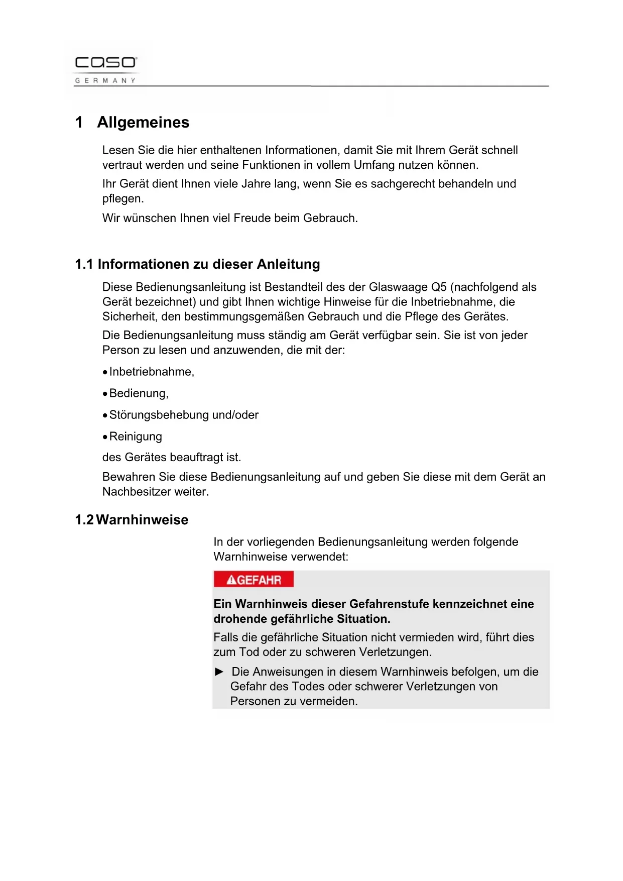 BEDIENUNGSANLEITUNG Q5 CASO