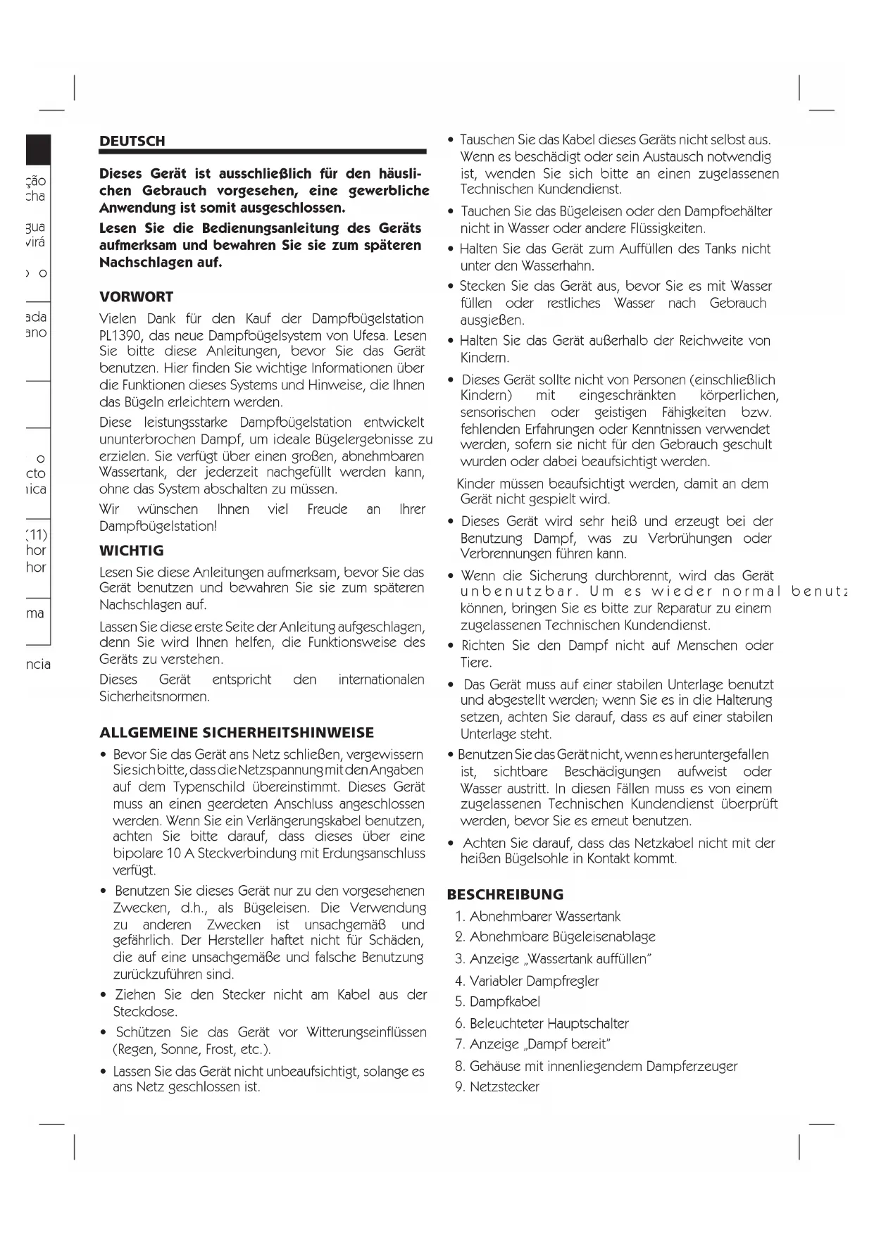 PL1390 - Bügeleisen UFESA - Kostenlose Bedienungsanleitung
