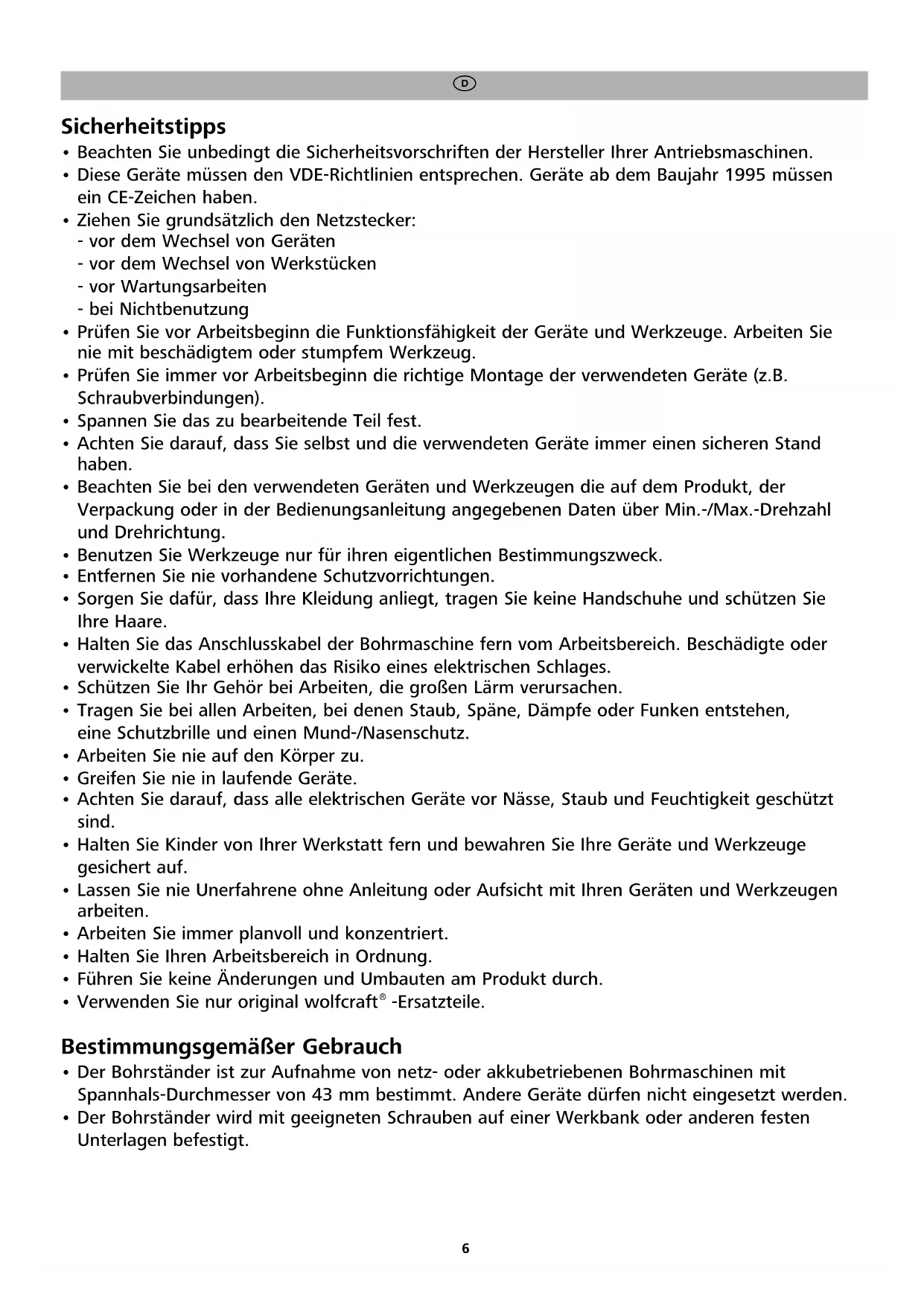 3406000 - Bohrmaschine WOLFCRAFT - Kostenlose Bedienungsanleitung