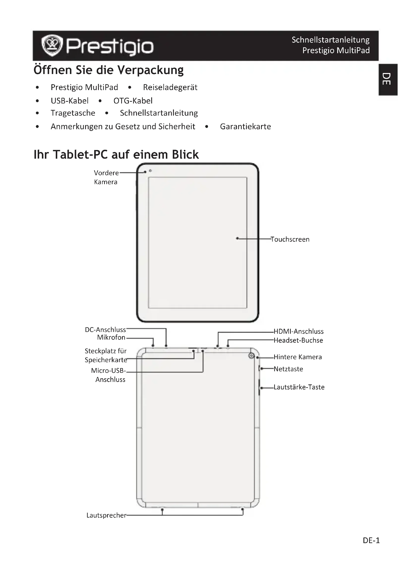 Schnellstartanleitung Prestigio MultiPad Öffnen Sie die Verpackung