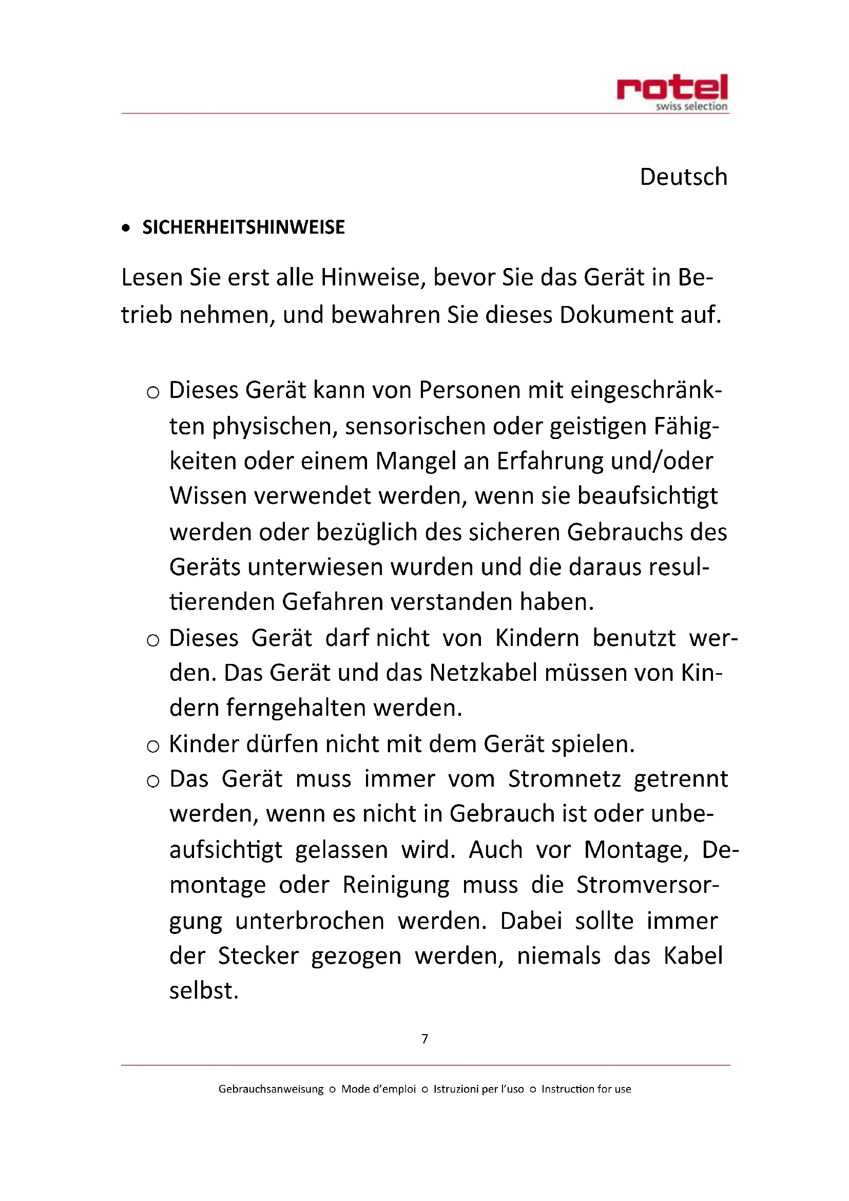 BEDIENUNGSANLEITUNG U207CH1 ROTEL
