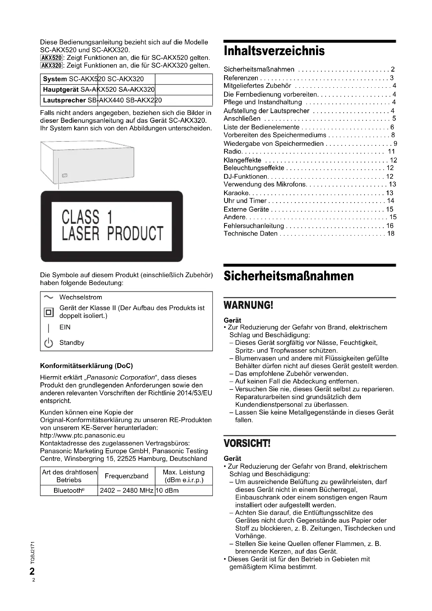 These Bedienungsanleitung bezieht sich auf die Modelle SC-AKX520 und SC-AKX320.