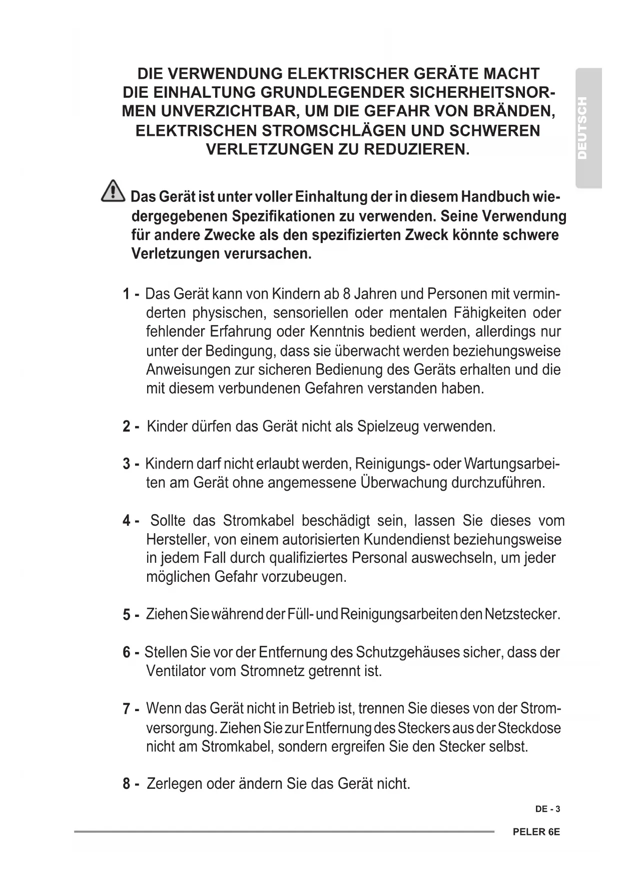 Stromschlägen das Produkt nicht in der Nähe irgendeines anderen elektronischen Gerätes.PELER 6E