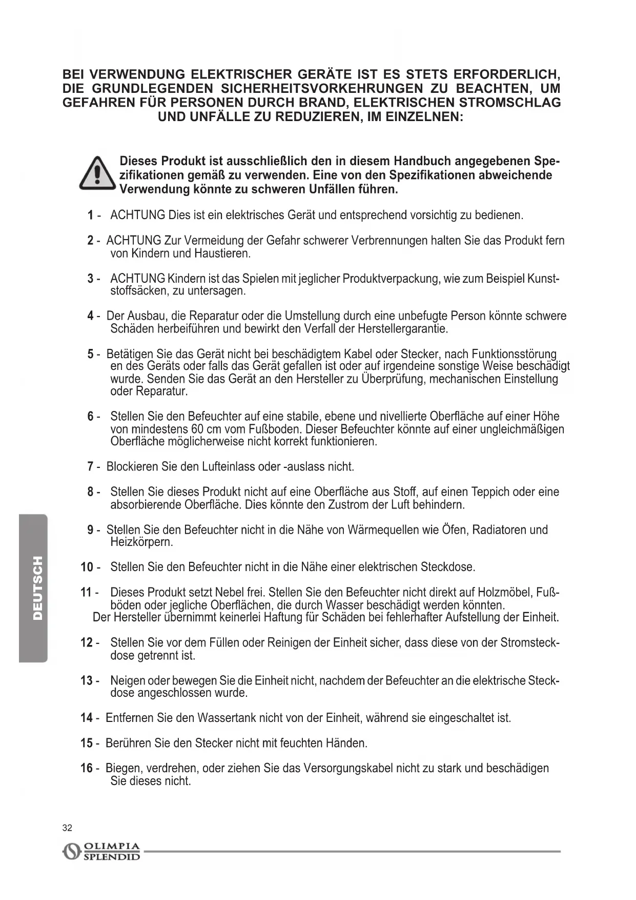 Laden Sie die Anleitung für Ihr Luftbefeuchter kostenlos im PDF-Format! Finden Sie Ihr Handbuch Limpia Pure - OLIMPIA SPLENDID und nehmen Sie Ihr elektronisches Gerät wieder in die Hand. Auf dieser Seite sind alle Dokumente veröffentlicht, die für die Verwendung Ihres Geräts notwendig sind. Limpia Pure von der Marke OLIMPIA SPLENDID.