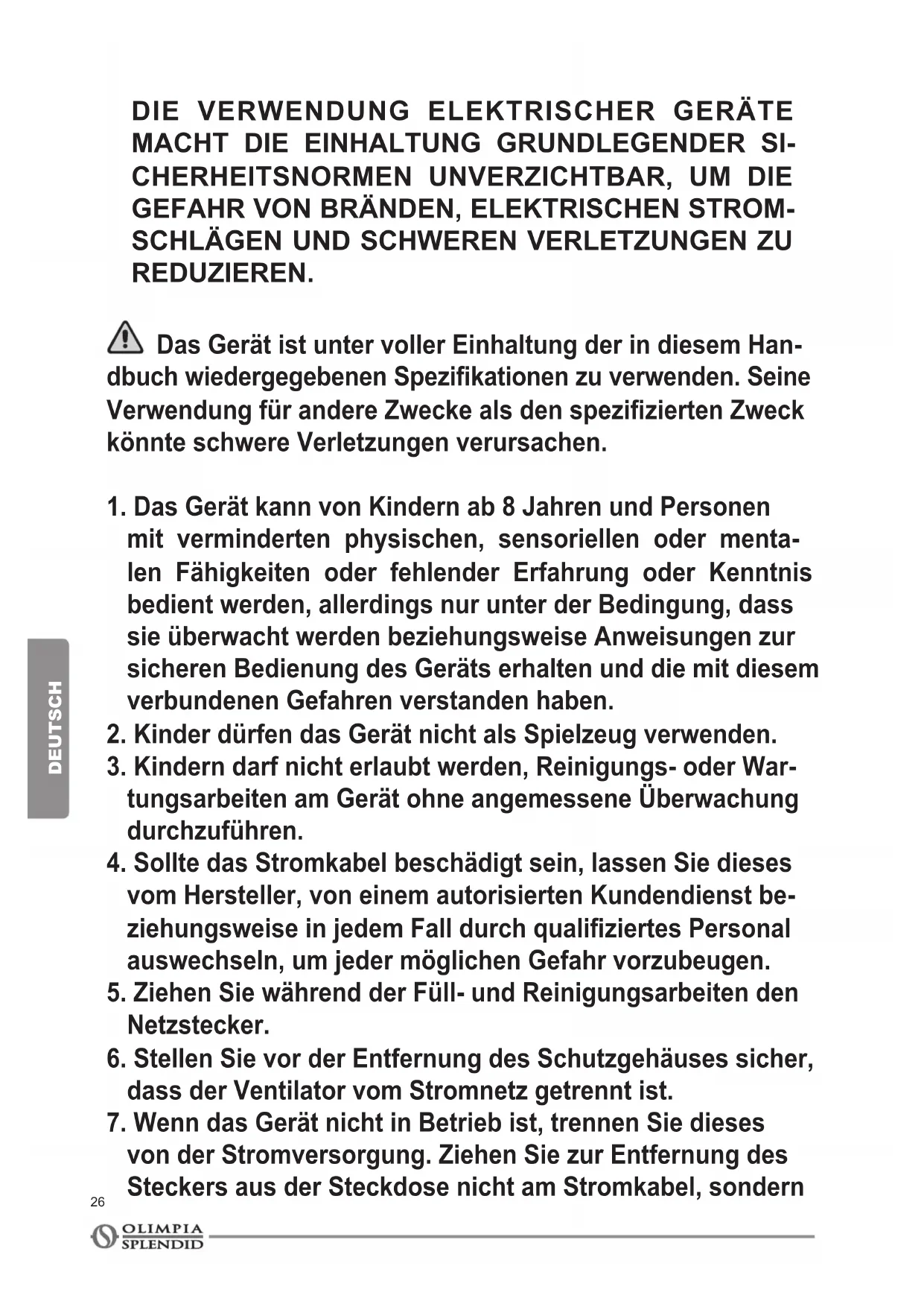 1. Das Gerät kann von Kindern ab 8 Jahren und Personen