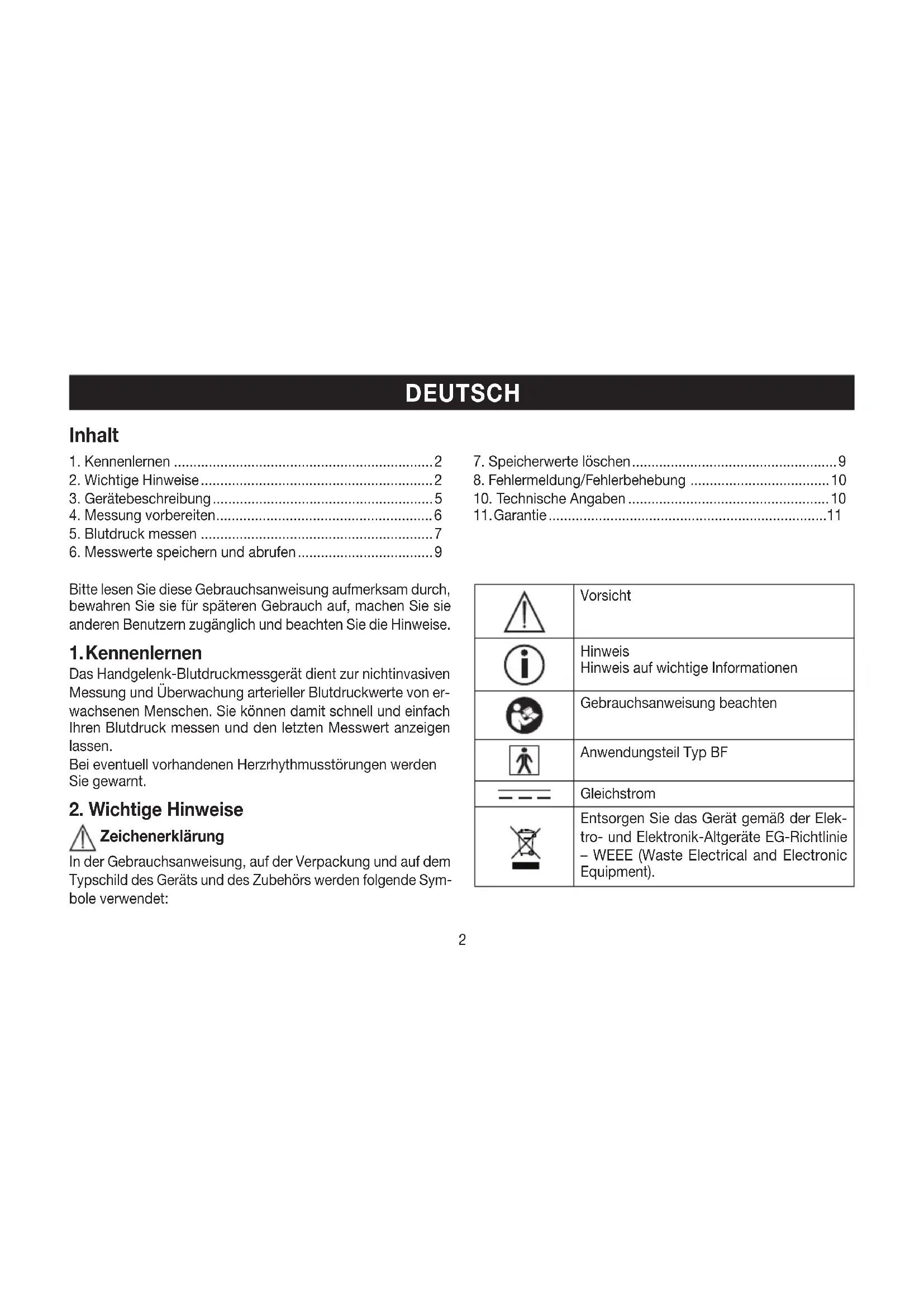 Die von Ihnen selbst ermittelten Messwerte können nur zu Ihrer Information dienen – sie ersetzen keine ärztliche Unter- suchung! Besprechen Sie Ihre Messwerte mit dem Arzt, begründen Sie daraus auf keinen Fall eigene medizinische Entscheidungen (z.B. Medikamente und deren Dosierungen)!