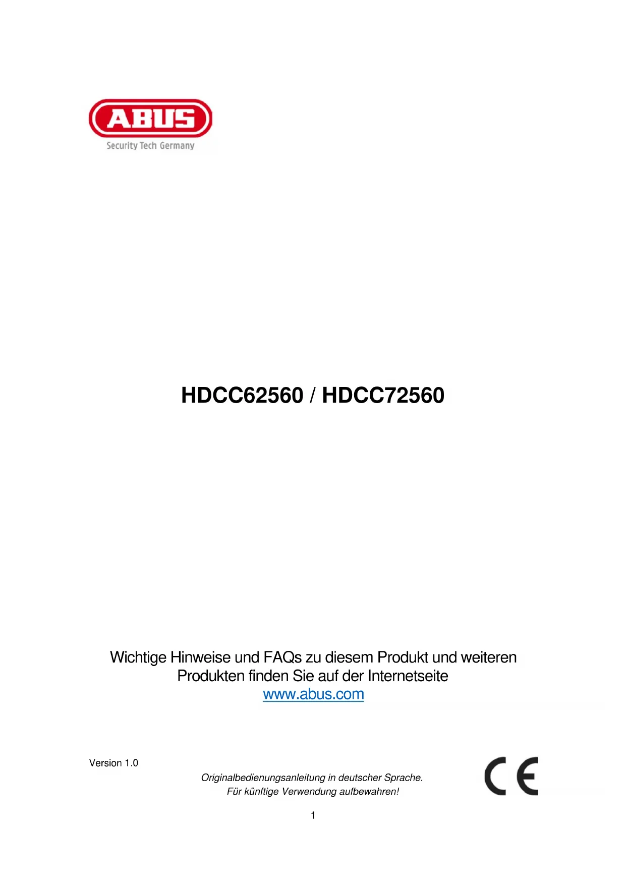Finden Sie kostenlos die Bedienungsanleitung des Geräts HDCC62560 ABUS als PDF.