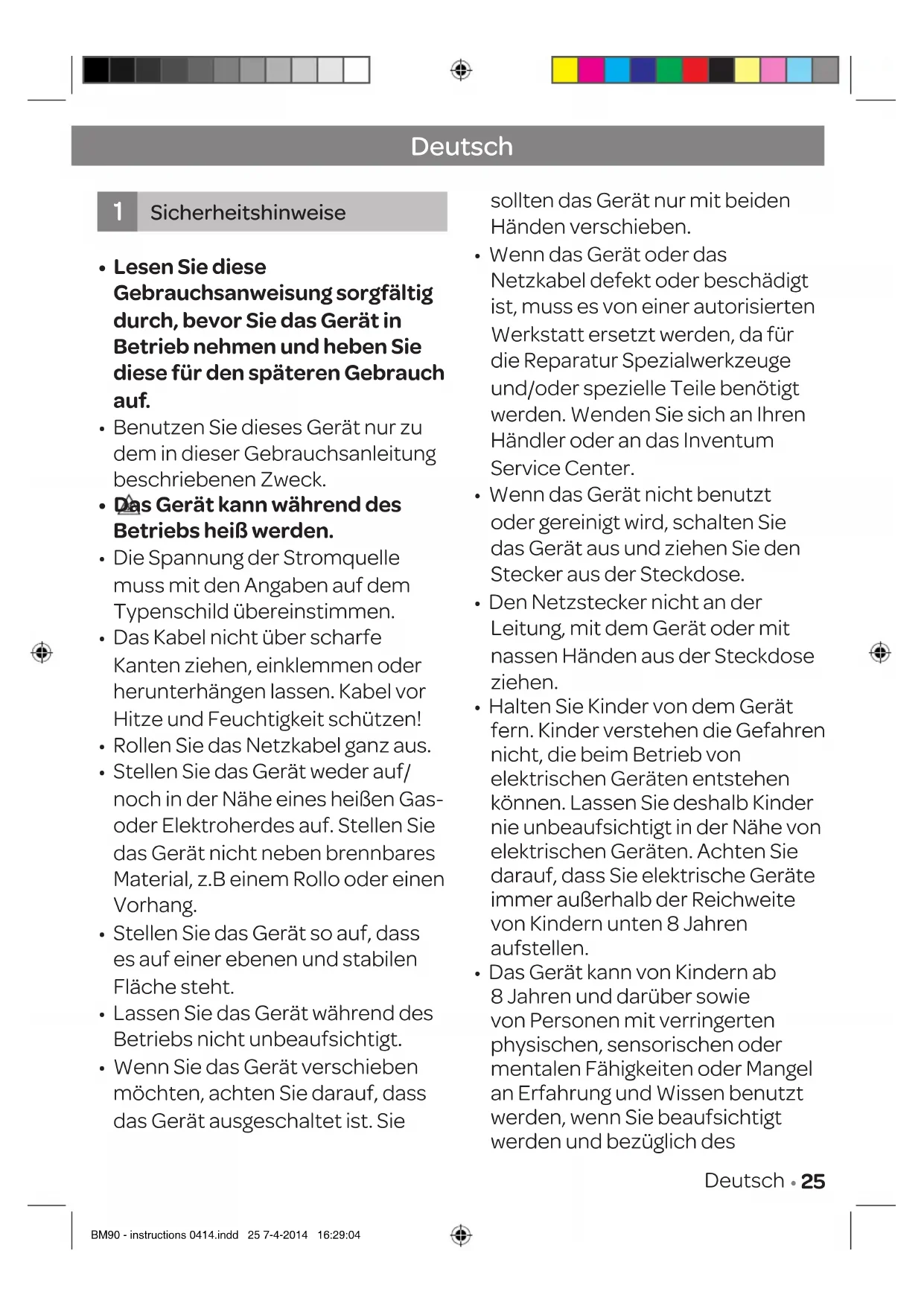 BEDIENUNGSANLEITUNG BM90 INVENTUM