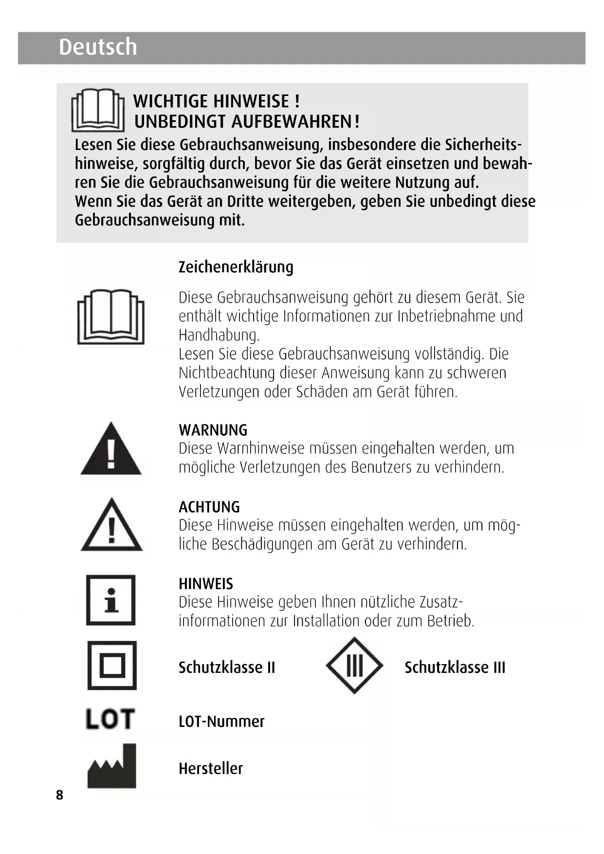 WICHTIGE HINWEISE! UNBEDINGT AUFBEWAHREN!