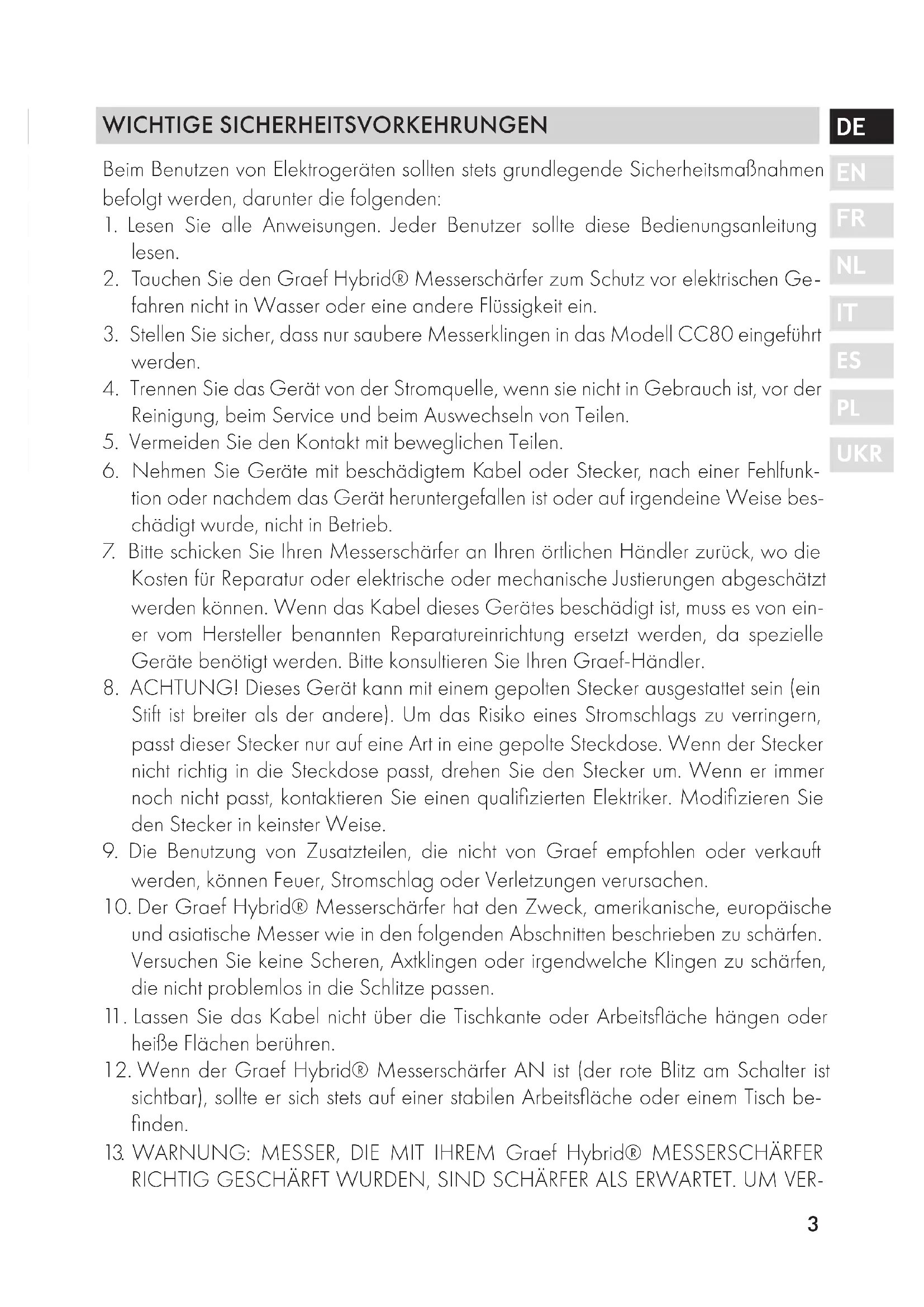 13. WARNUNG: MESSER, DIE MIT IHREM Graef Hybrid® MESSERSCHÄRFER