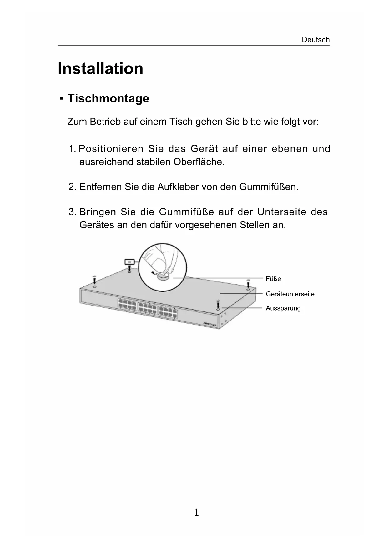 Gerätes an den dafür vorgesehenen Stellen an. Füße Geräteunterseite Aussparung Deutsch2
