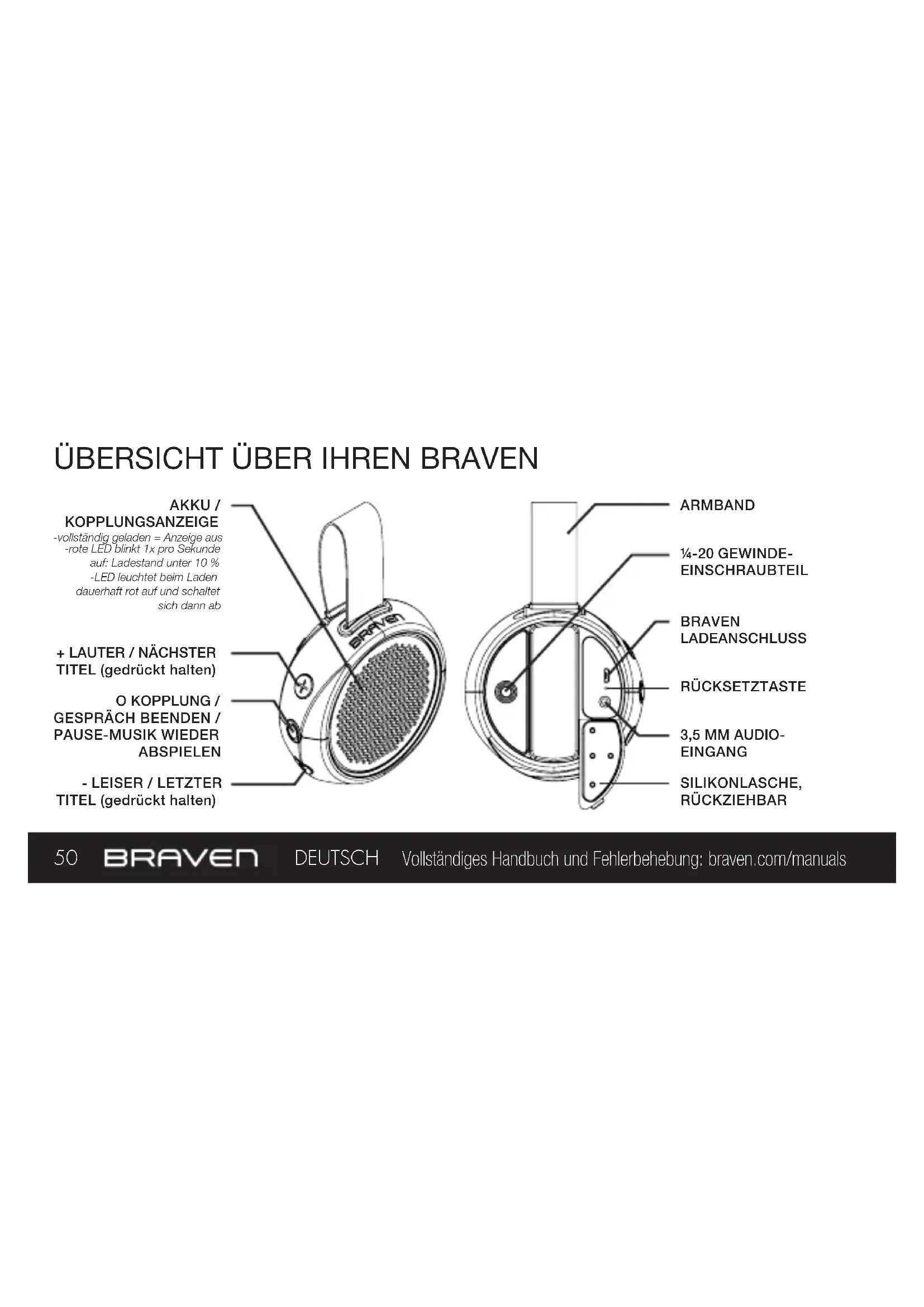 Vollständiges Handbuch und Fehlerbehebung: braven.com/manuals DEUTSCH
