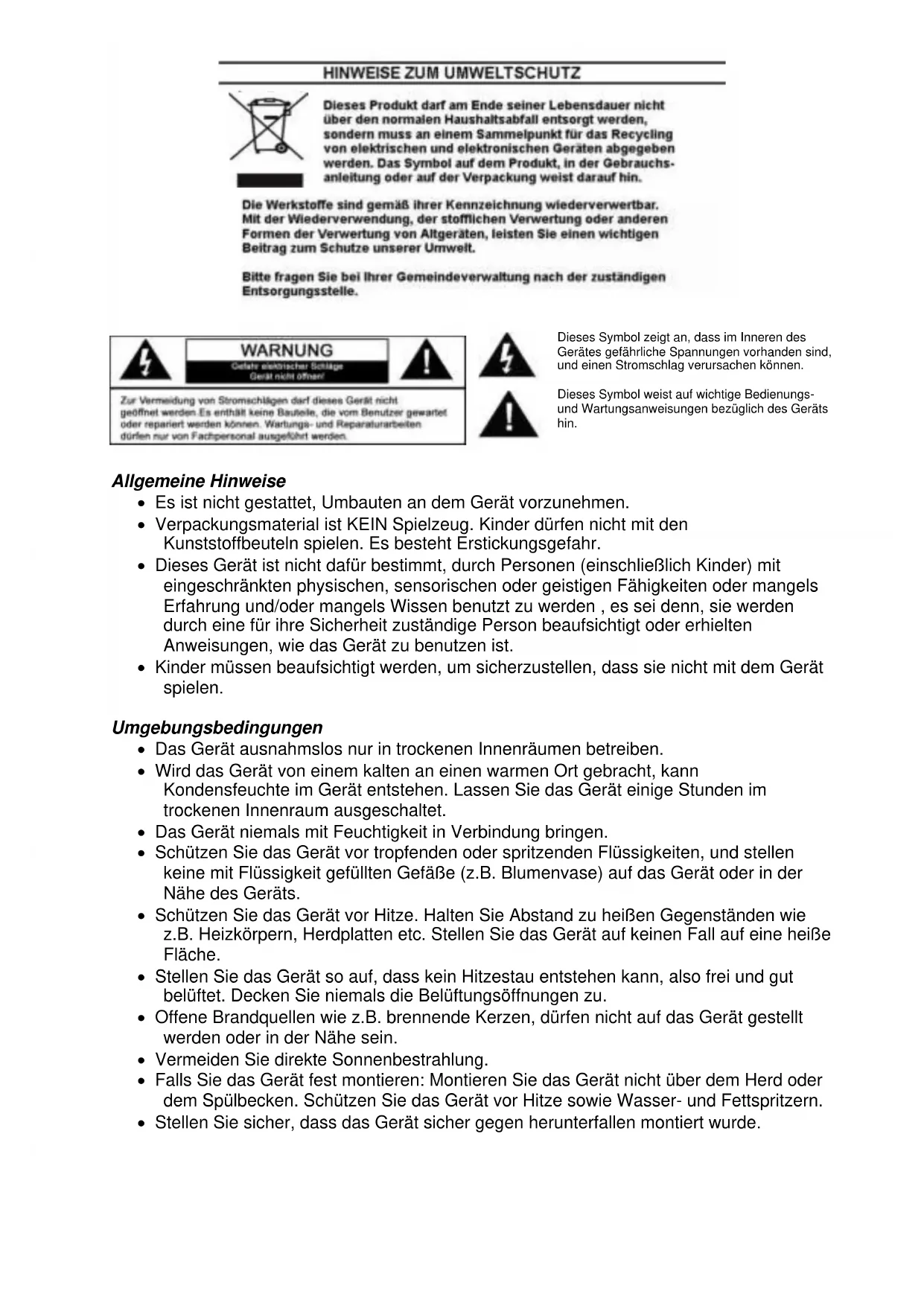 - Es ist nicht gestattet, Umbauten an dem Gerät vorzunehmen.