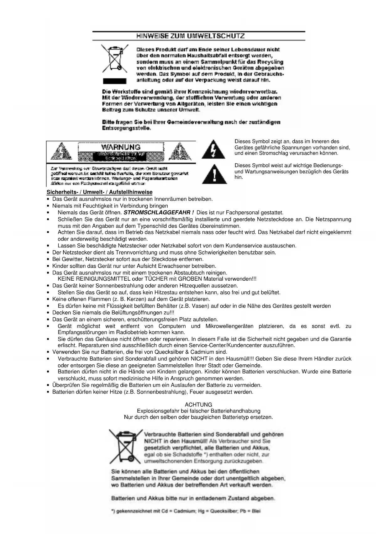 - Verbrauchte Batterien sind Sonderabfall und gehören NICHT in den Hausmüll!!! Geben Sie diese Ihrem Händler zurück oder entsorgen Sie diese an geeigneten Sammelstellen Ihrer Stadt oder Gemeinde.