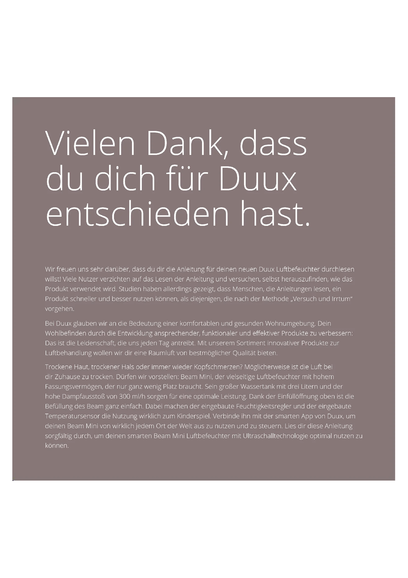 Finden Sie kostenlos die Bedienungsanleitung des Geräts Beam DUUX als PDF.