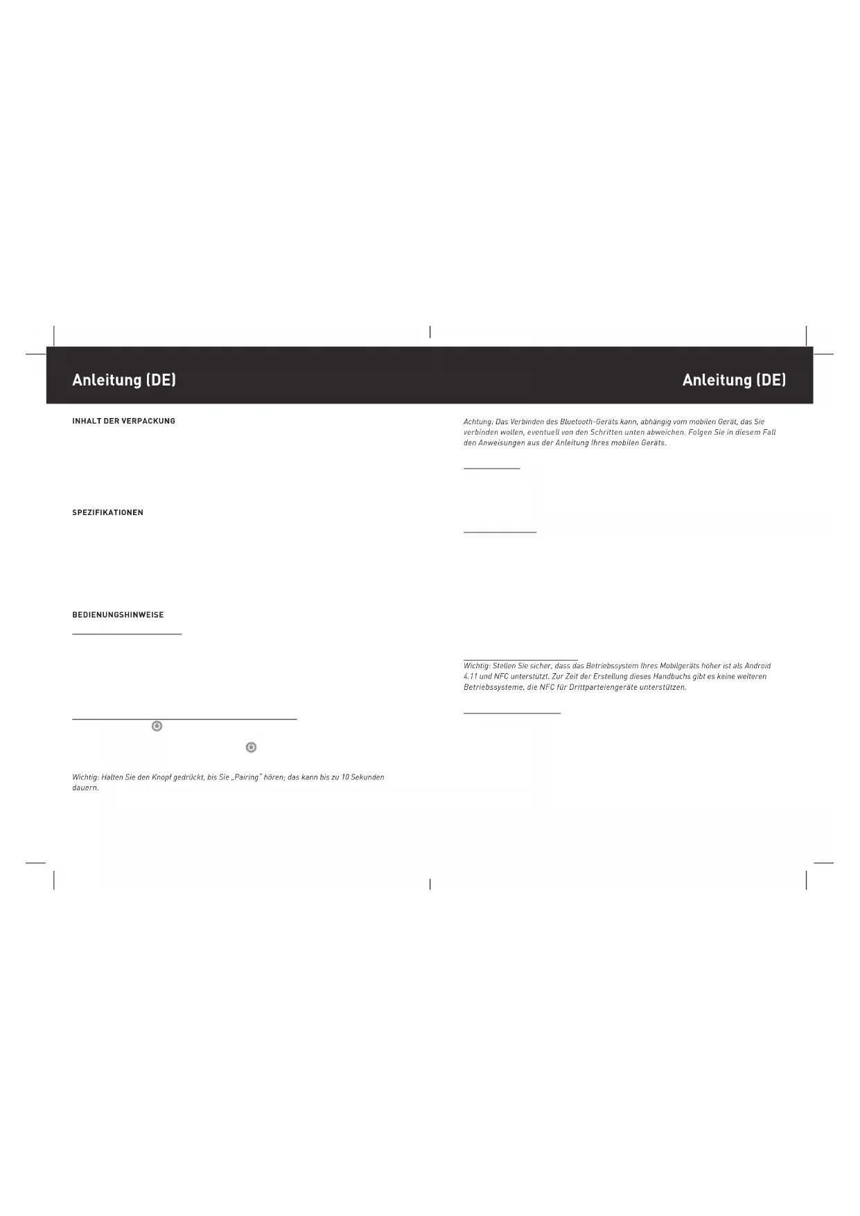Wichtig: Halten Sie den Knopf gedrückt, bis Sie „Pairning“ horen; das kann bis zu 10 Sekunden dauern.