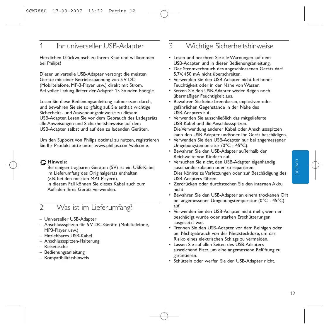 Lesen Sie diese Bedienungsanleitung aufmerksam durch, und bewahren Sie sie sorgfältig auf. Sie enthalt wichtige Sicherheits- und Anwendungshinweise zu dieser USB-Adapter. Lesen Sie vor dem Gebrauch des Ladegerats alle Anweisungen und Sicherheitshinweise auf dem USB-Adapter selbst und auf den zu ladenden Geräten.