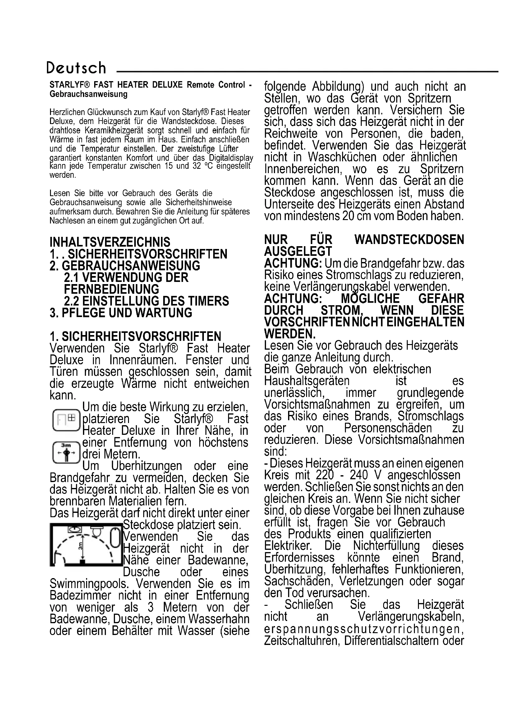 BEDIENUNGSANLEITUNG Fast Heater Deluxe Remote Control Starlyf