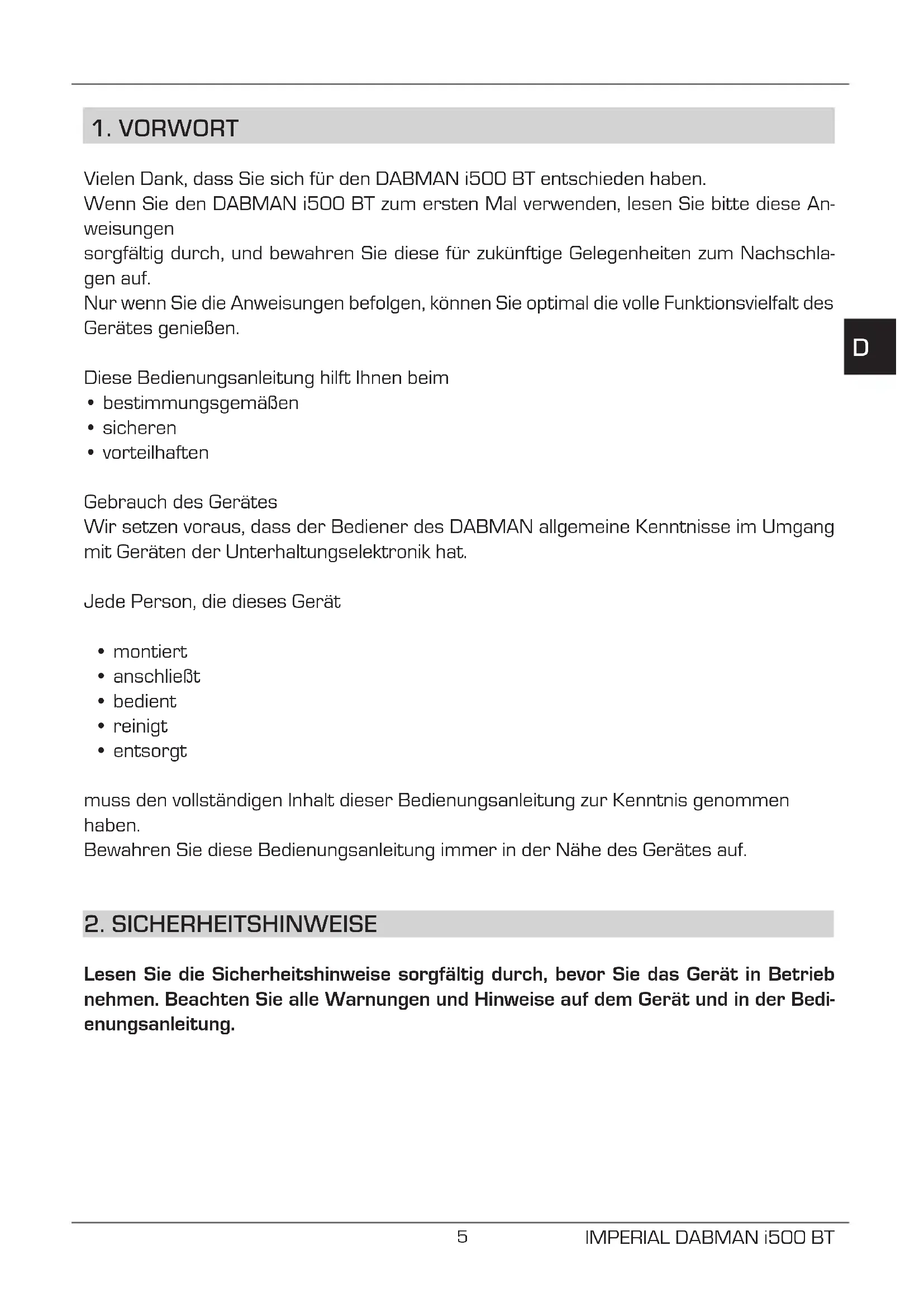 BEDIENUNGSANLEITUNG DABMAN i500 BT Telestar