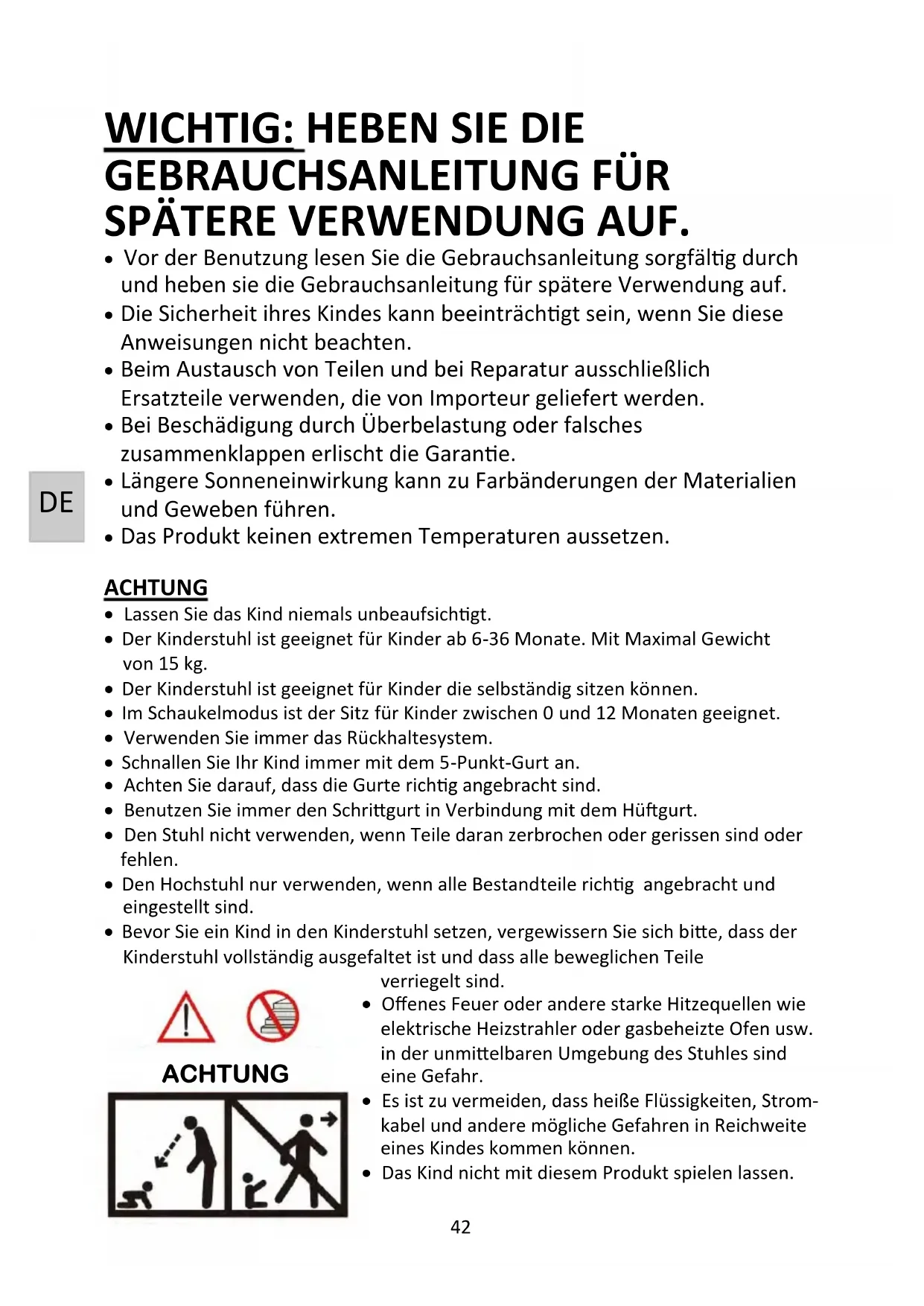 - Die Sicherheit ihres Kindes kann beeinträchtigt sein, wenn Sie diese Anweisungen nicht beachten.