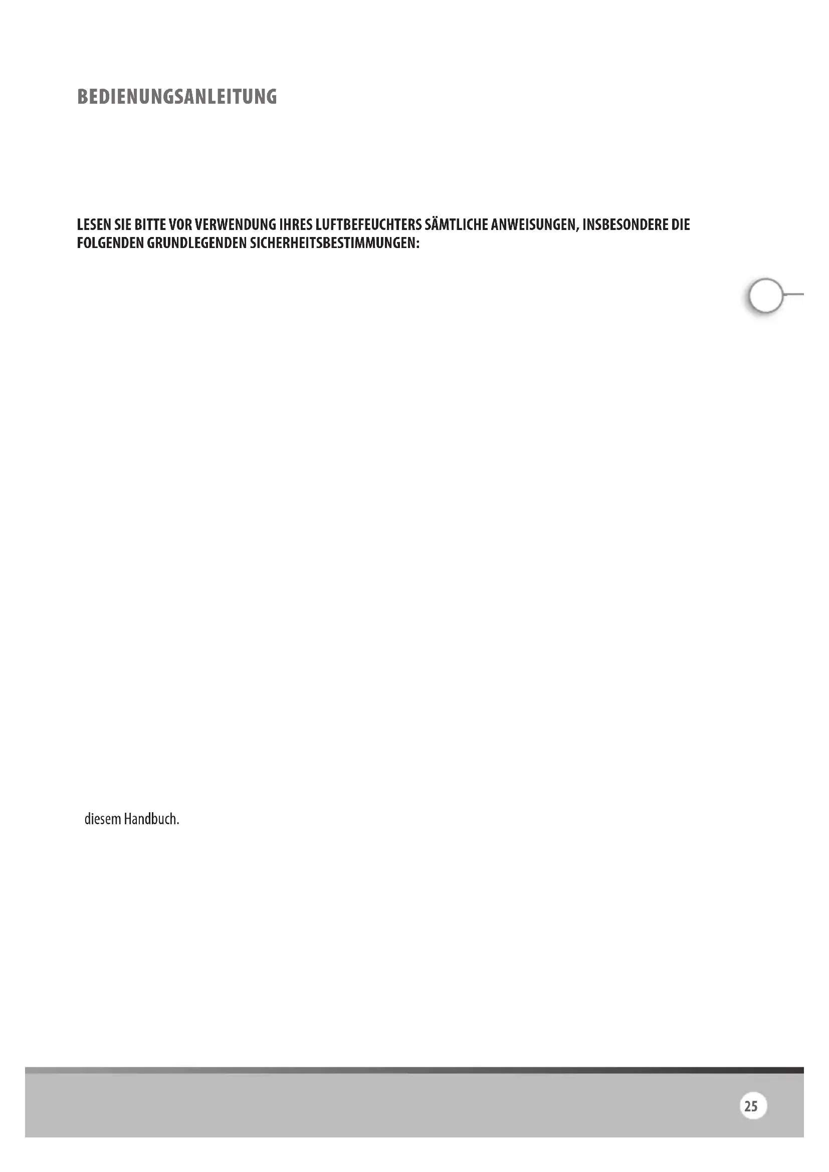 - Der Ultraschallbefeuchter muss regelmäßig gereinigt werden. Lesen und beachten Sie dazu die Reinigungshinweise in diesem Handbuch.