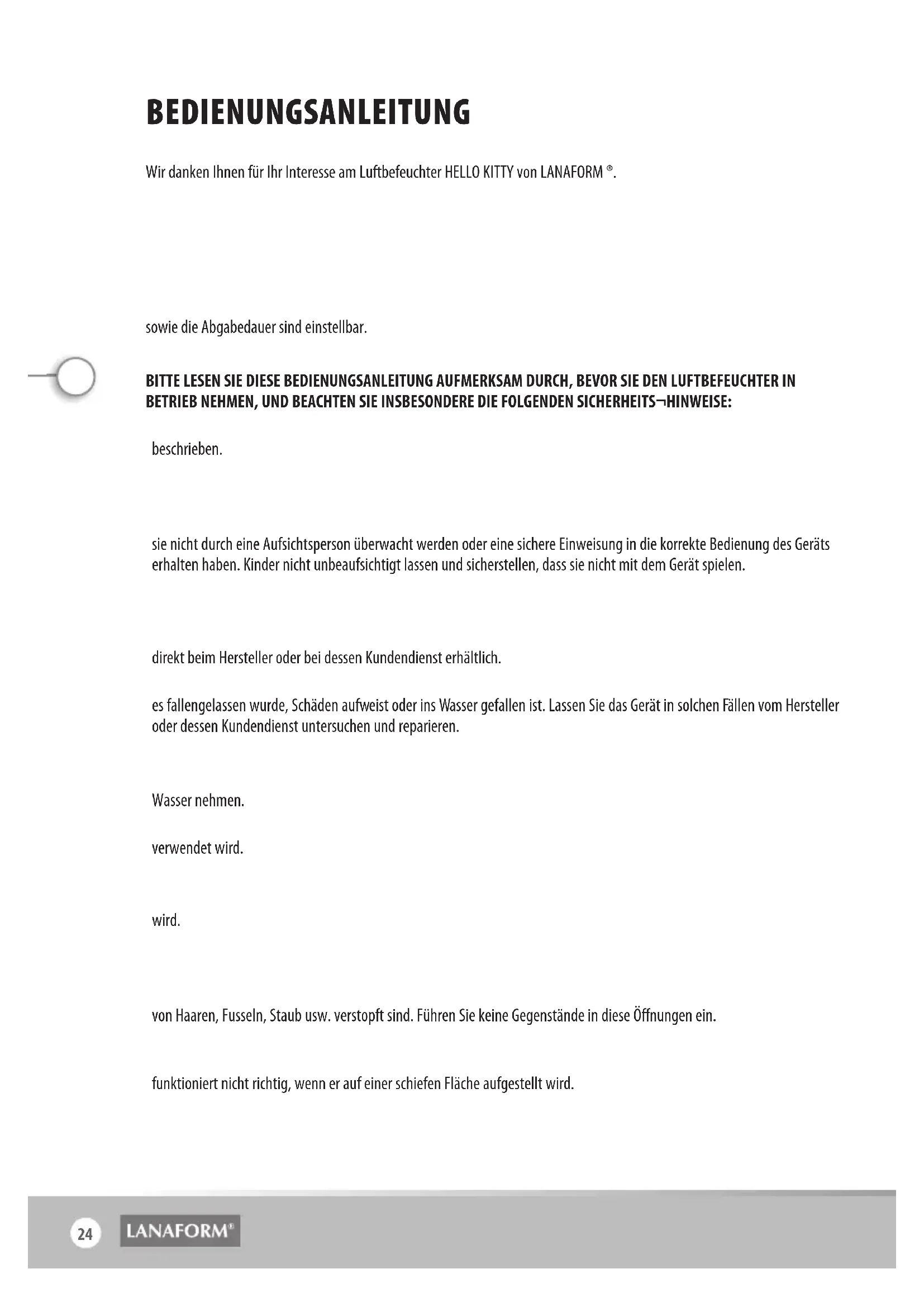 BEDIENUNGSANLEITUNG Hello Kitty LANAFORM