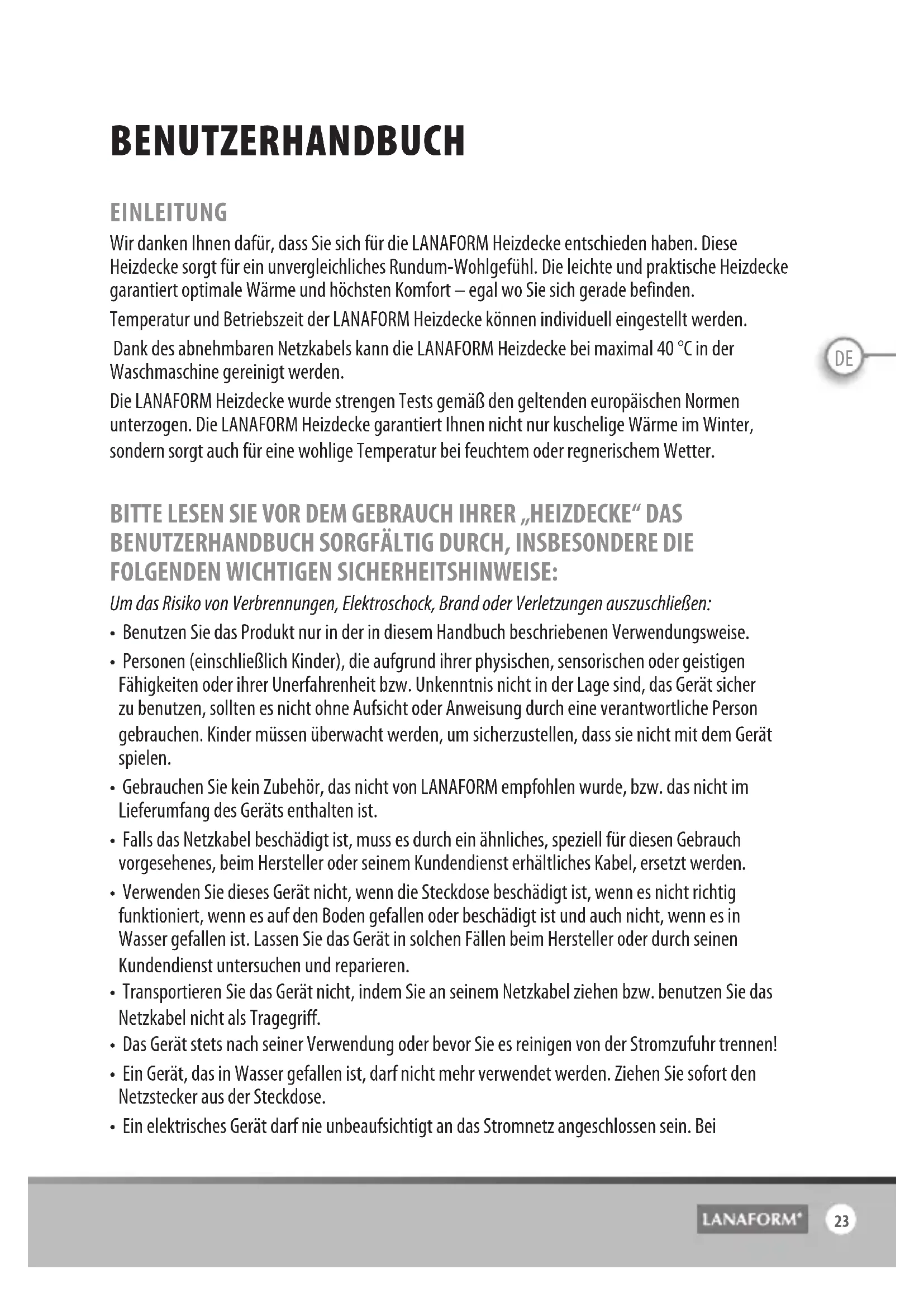 BEDIENUNGSANLEITUNG Heating Overblanket LANAFORM