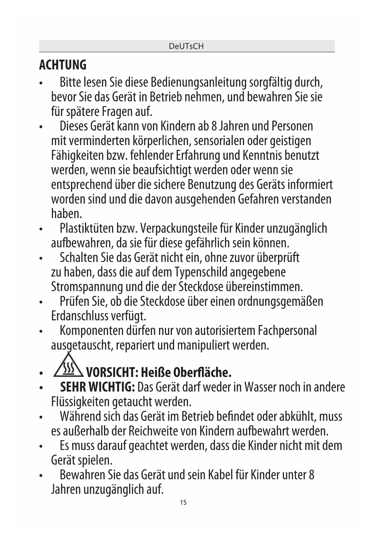 - Dieses Gerät ist ausschlieβlich für den Gebrauch im Haushalt bestimmt.
