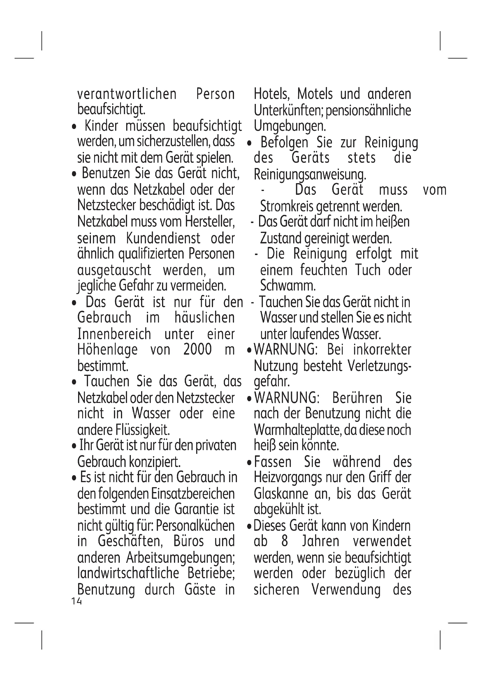 - WARNUNG: Berühren Sie nach der Benutzung nicht die Warmhalteplatte, da diese noch heiß sein könnte.