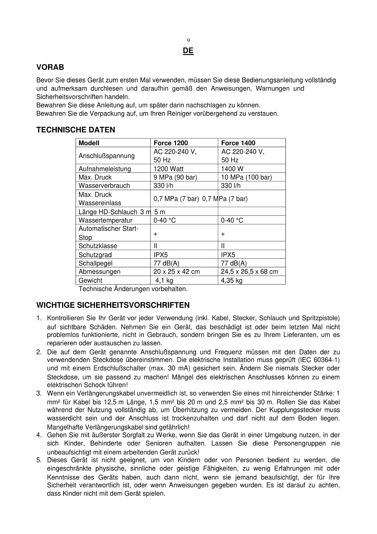 BEDIENUNGSANLEITUNG Force 1400 Euromac