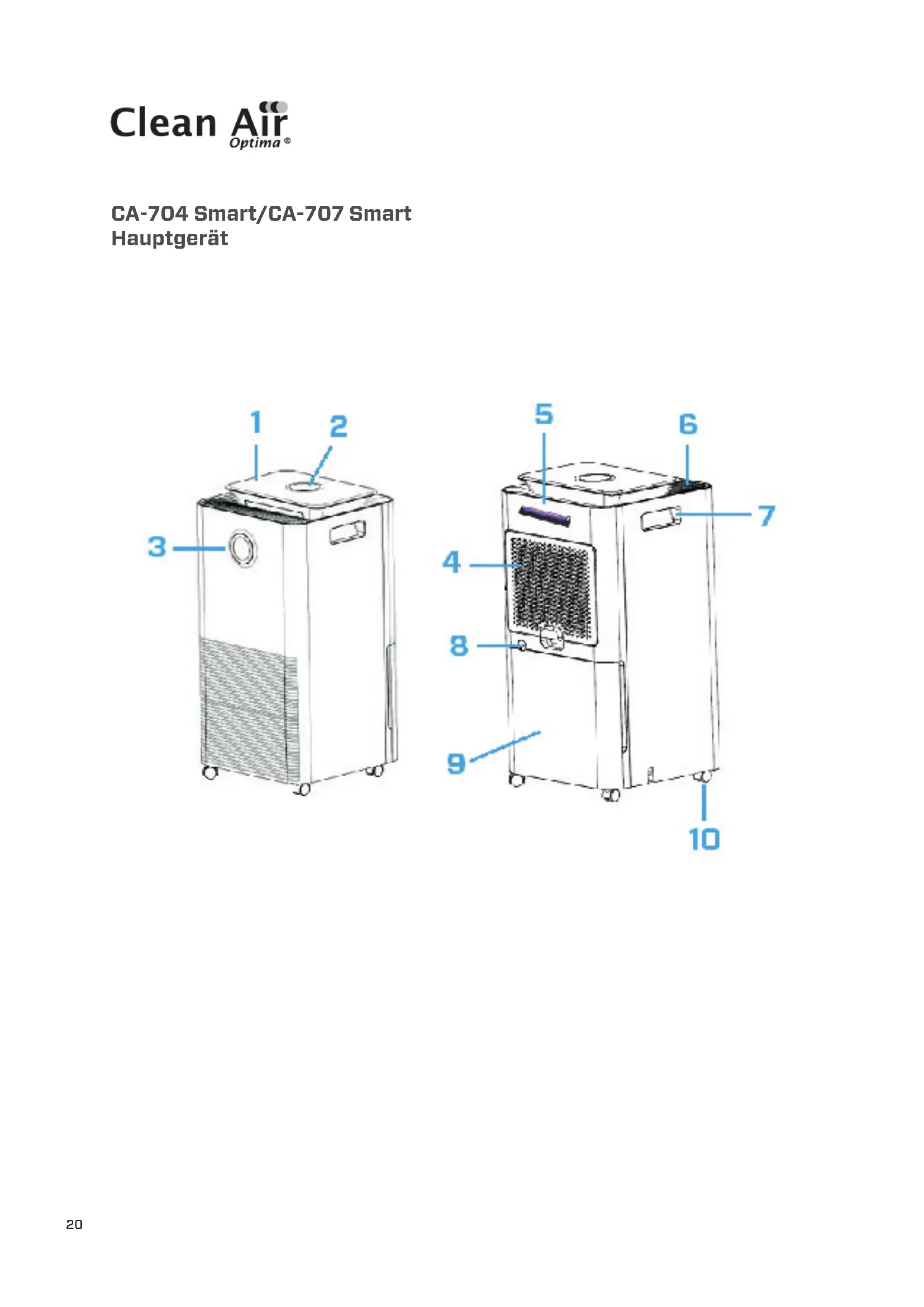 Für früiggestellte Fragen zum CA-704 Smart/CA-707 Smart besuchen Sieitte:www.cleanairoptima.com undsuchen Sie nach „CA-704 Smart/ CA-707 Smart".