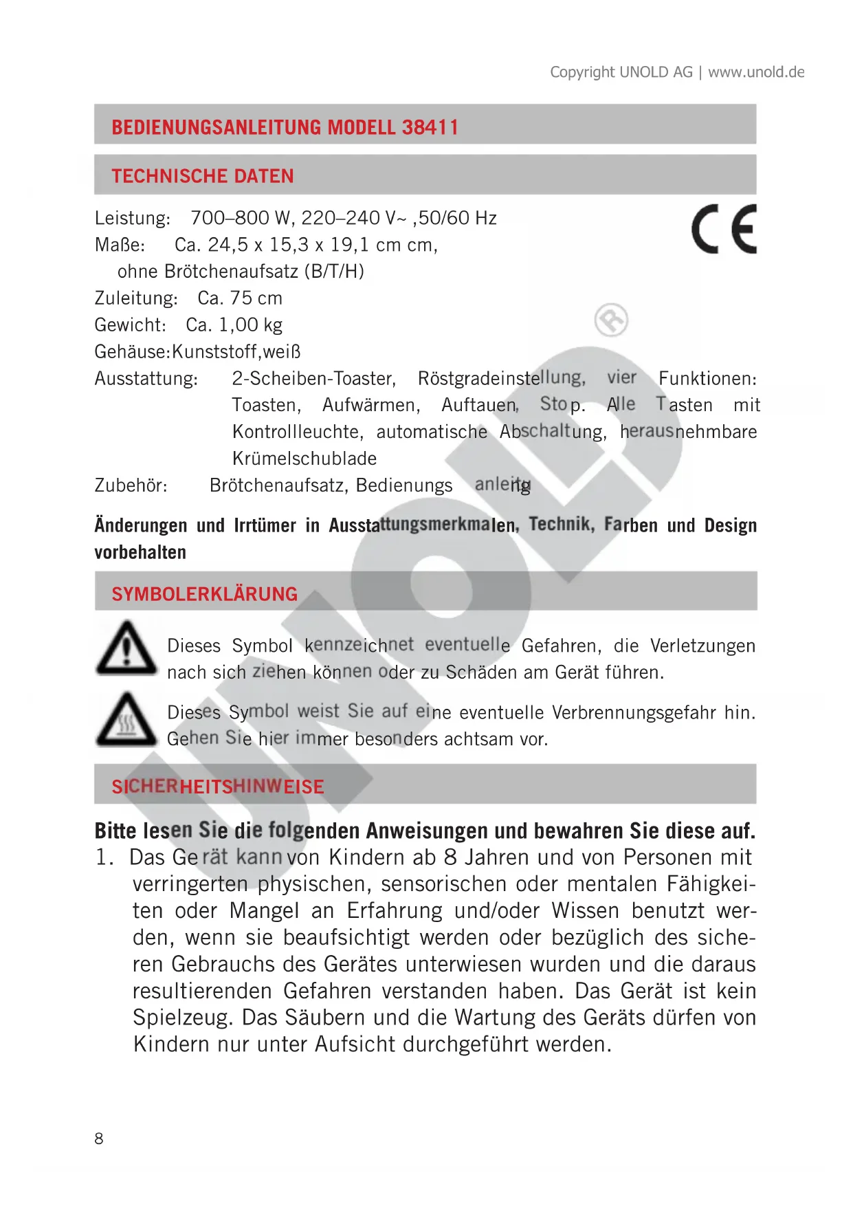 Finden Sie kostenlos die Bedienungsanleitung des Geräts 38411 UNOLD als PDF.