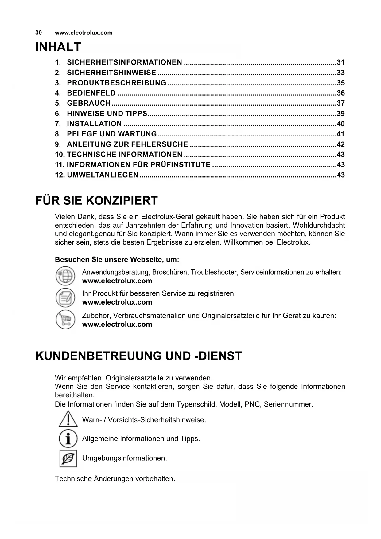 www.electrolux.com Vielen Dank, dass Sie ein Electrolux-Gerät gekauft haben. Sie haben sich für ein Produkt entschieden, das auf Jahrzehnten der Erfahrung und Innovation basiert. Wohldurchdacht und elegant,genau für Sie konzipiert. Wann immer Sie es verwenden möchten, können Sie sicher sein, stets die besten Ergebnisse zu erzielen. Willkommen bei Electrolux. Besuchen Sie unsere Webseite, um: Anwendungsberatung, Broschüren, Troubleshooter, Serviceinformationen zu erhalten: www.electrolux.com Ihr Produkt für besseren Service zu registrieren: www.electrolux.com Zubehör, Verbrauchsmaterialien und Originalersatzteile für Ihr Gerät zu kaufen: www.electrolux.com