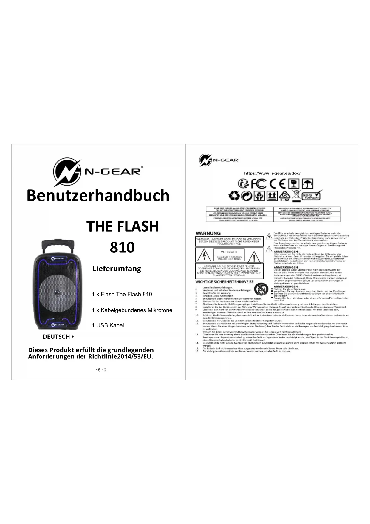 810https://www.n-gear.eu/doc/ DEUTSCH • Lieferumfang Benutzerhandbuch Dieses Produkt erfüllt die grundlegenden Anforderungen der Richtlinie2014/53/EU. THE FLASH