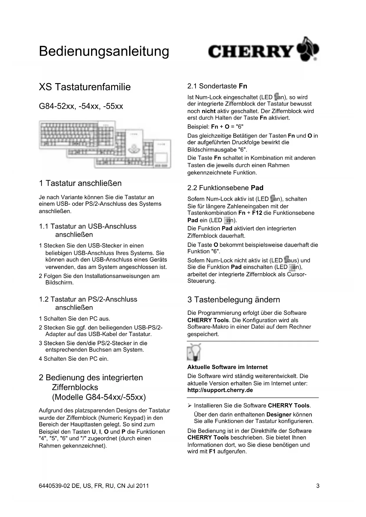 XS Touchpad G845500 - Tastatur Cherry - Kostenlose Bedienungsanleitung
