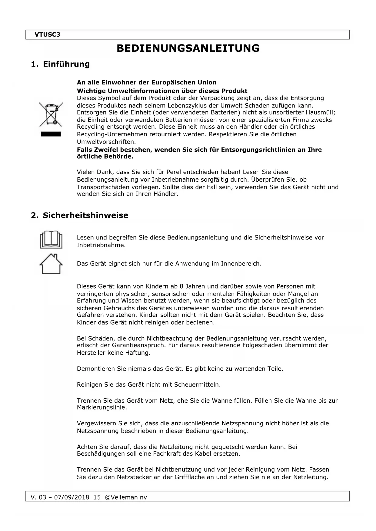 BEDIENUNGSANLEITUNG VTUSC3 Perel