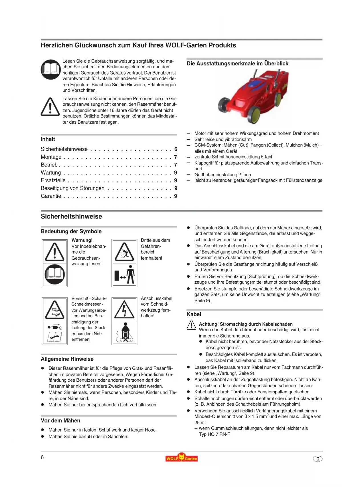 Herzlichen Glückwunsch zum Kauf Ihres WOLF-Garten Produkts Inhalt Sicherheitshinweise