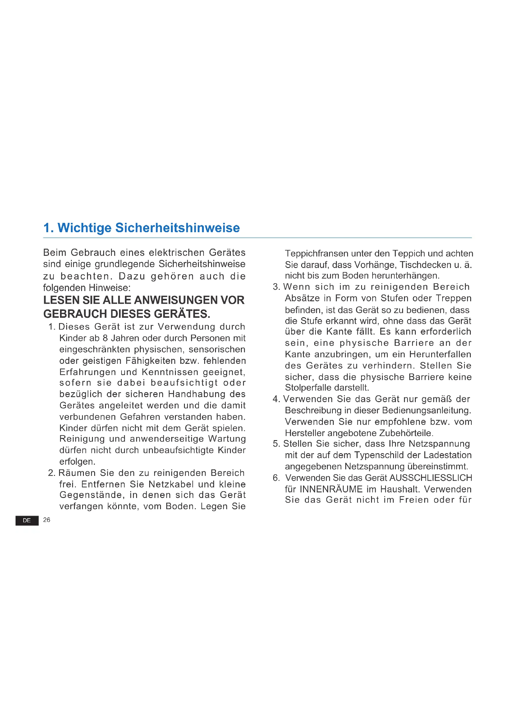 1. Wichtige Sicherheitshinweise
