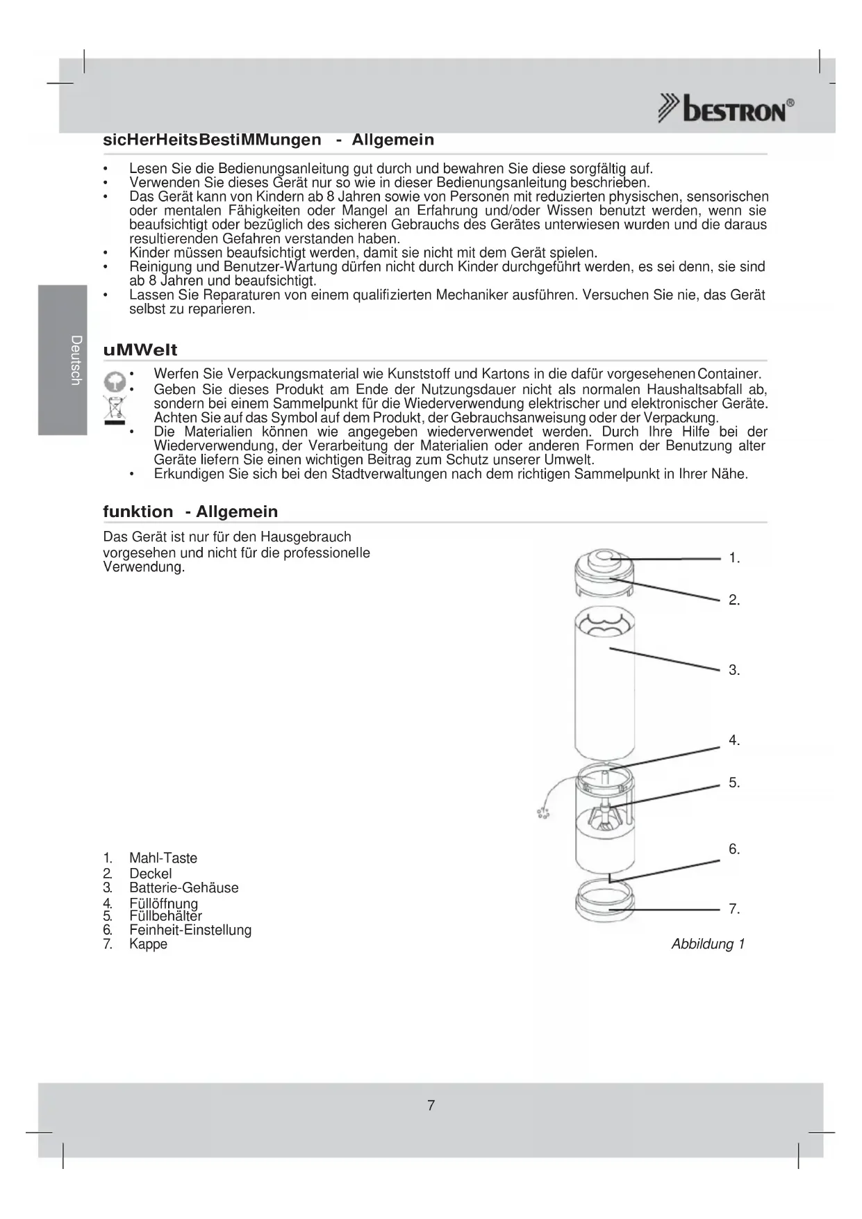Schließen Sie die Mühle mit der Kappe (7) wenn nicht in Gebrauch. gArAntieBestiMMungen