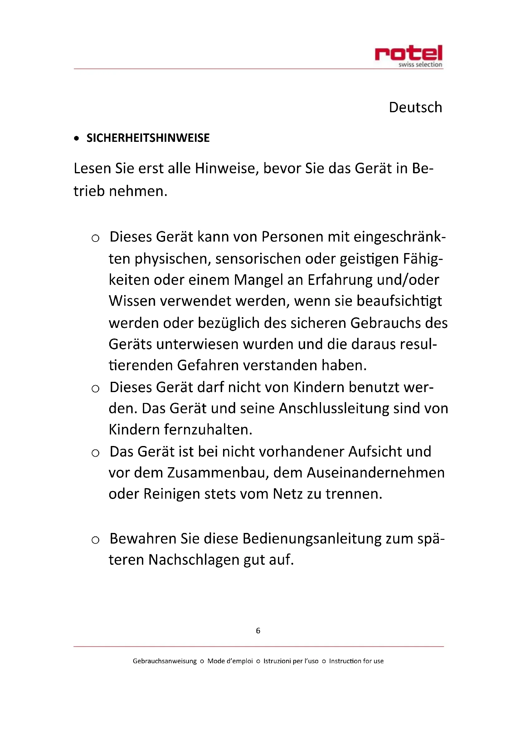 - Sicherheitshinweise 6