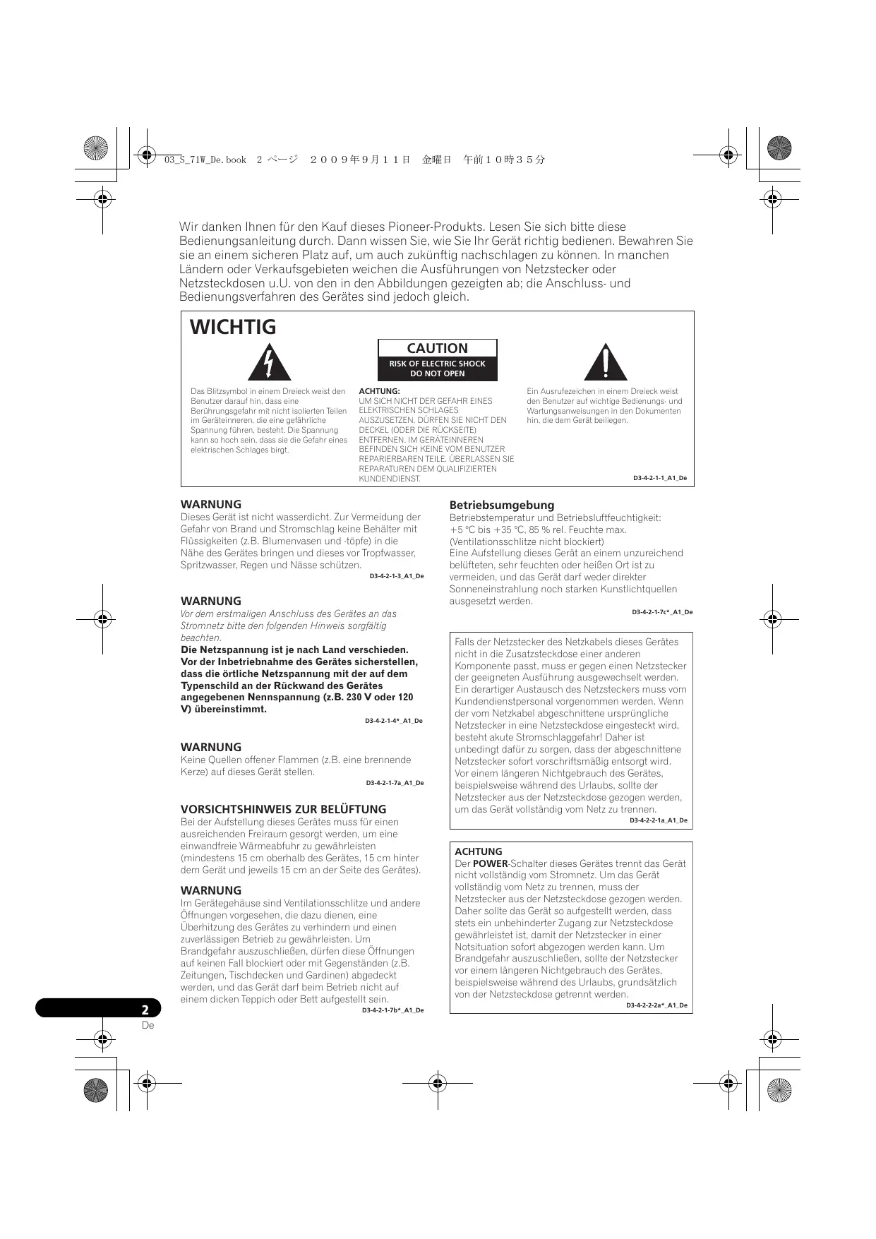 Änderungen der technischen Daten und äußeren Aufmachung im Sinne der ständigen Produktverbesserung bleiben jederzeit vorbehalten. Veröffentlicht von Pioneer Corporation. Urheberrechtlich geschützt © 2009 Pioneer Corporation. Alle Rechte vorbehalten.