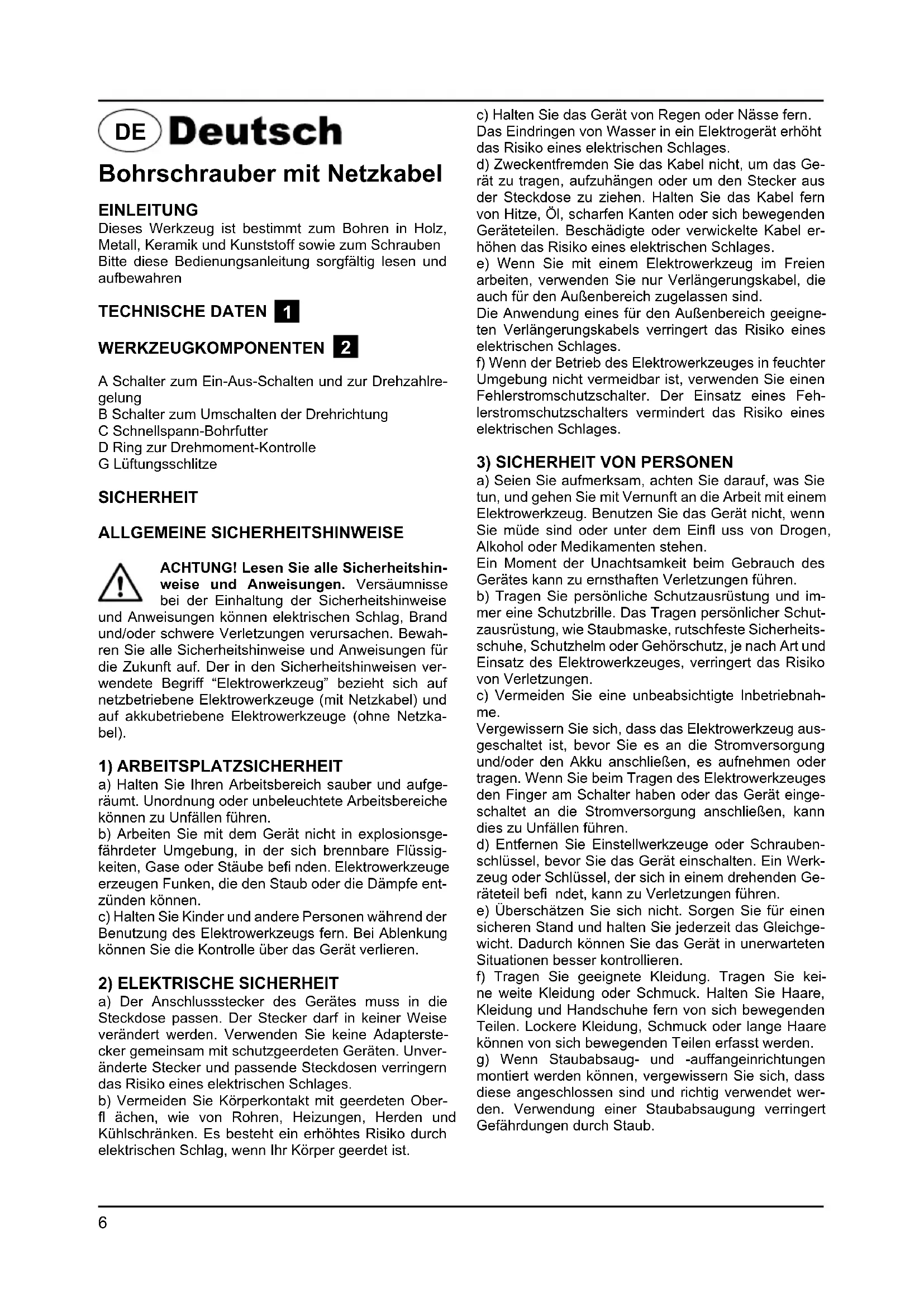 Dieses Werkzeug ist bestimmt zum Bohren in Holz, Metall, Keramik und Kunststoff sowie zum Schrauben Bitte diese Bedienungsanleitung sorgfältig lesen und aufbewahren