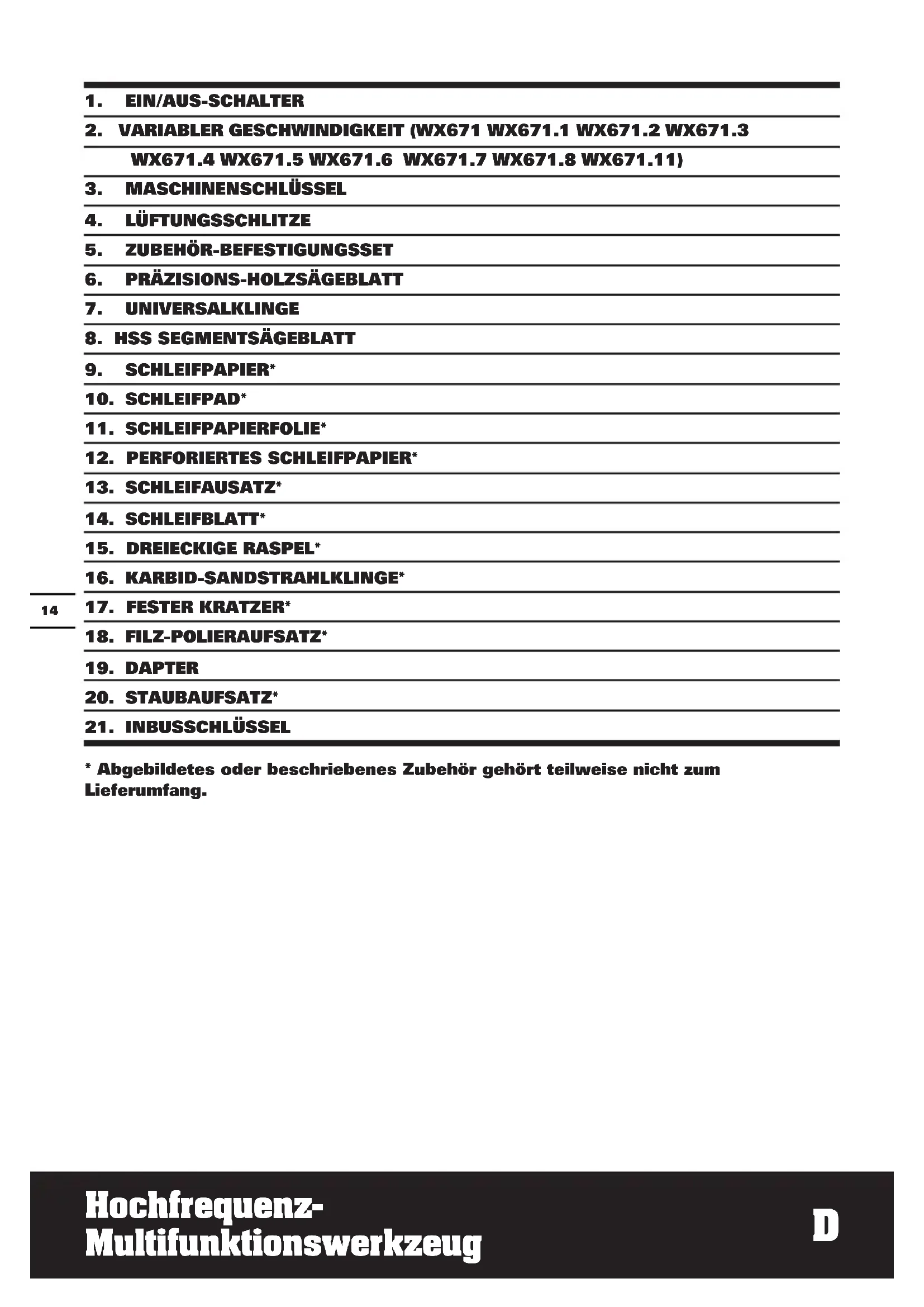 - Abgebildetes oder beschriebenes Zubehör gehört teilweise nicht zum Lieferumfang.D
