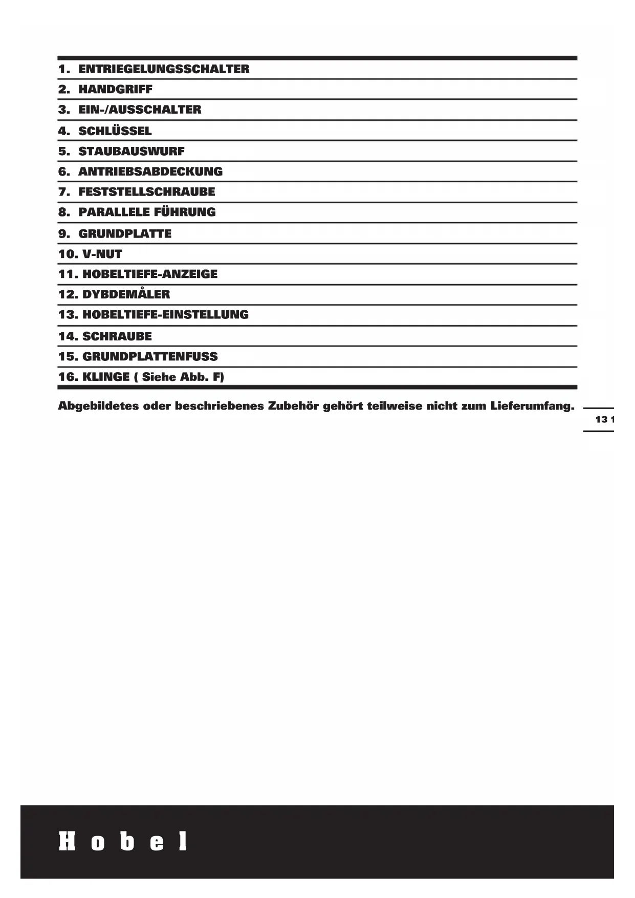 | 13. HOBELTIEFE-EINSTELLUNG |