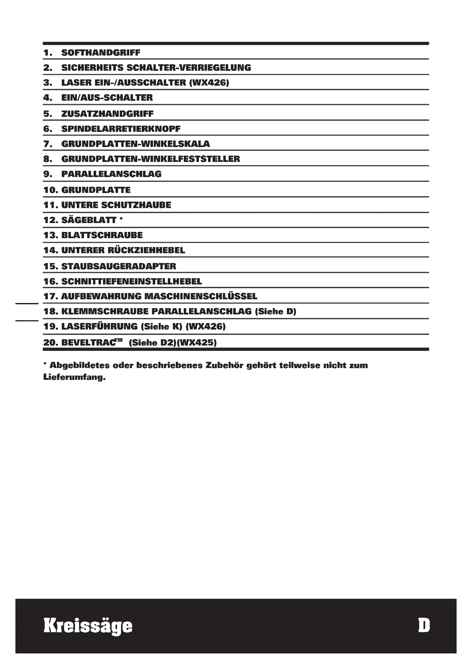 - Abgebildetes oder beschriebenes Zubehör gehört teilweise nicht zum Lieferumfang.Kreissäge D
