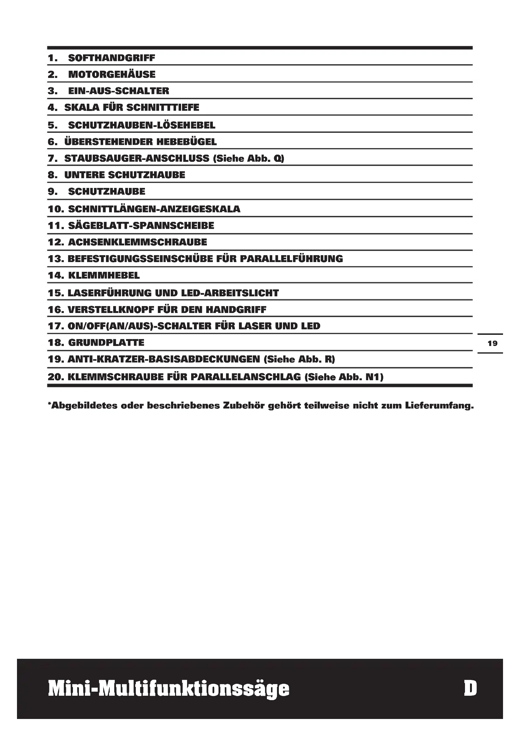 *Abgebildetes oder beschriebenes Zubehör gehört teilweise nicht zum Lieferumfang. Mini-Multifunktionssäge DMini-Multifunktionssäge D
