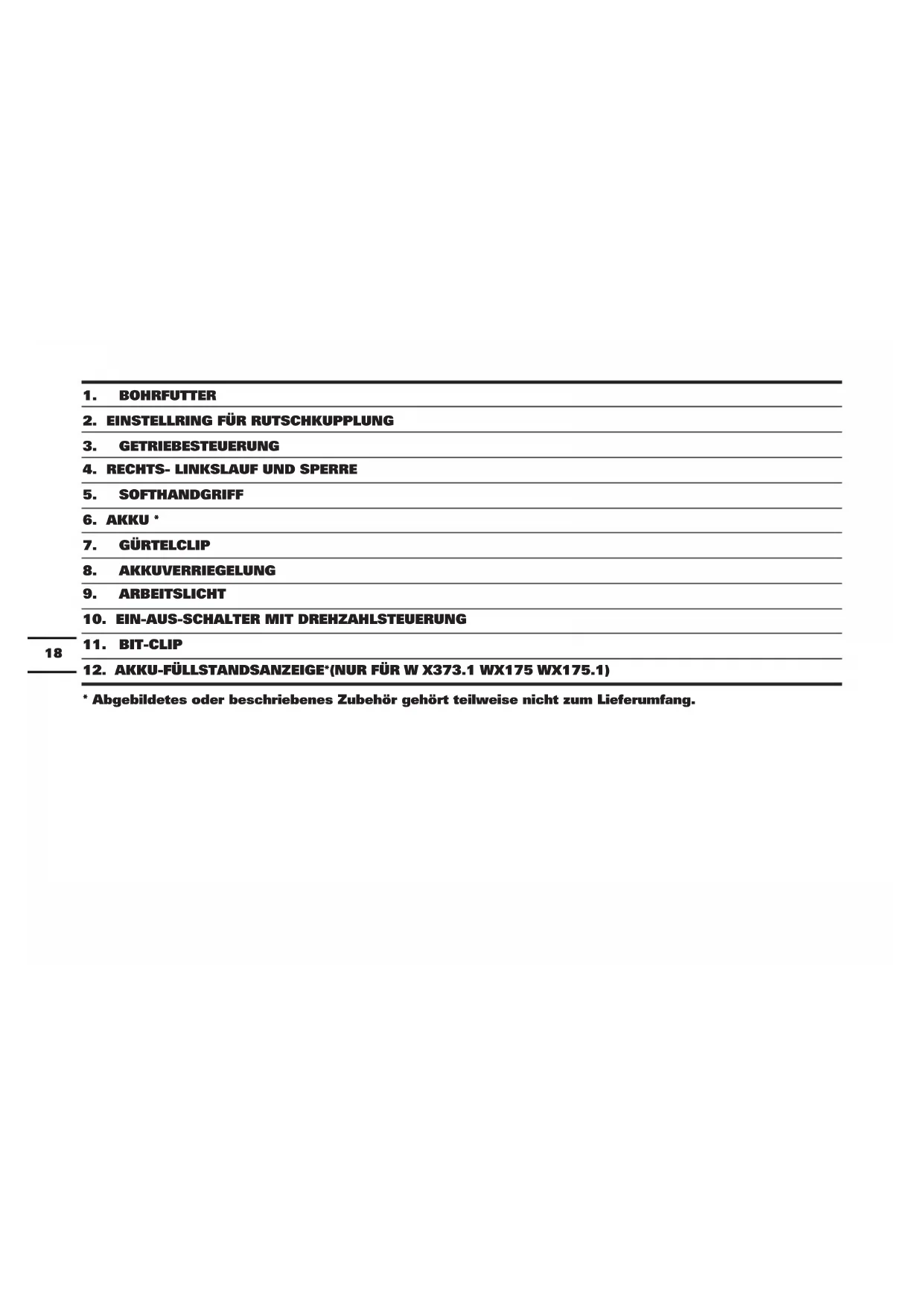 WX175 WX175.1 WX175.2 WX175.9) Das Gerät ist bestimmt zum Eindrehen und Lösen von Schrauben sowie zum Bohren in Holz, Metall und Kunststoff.